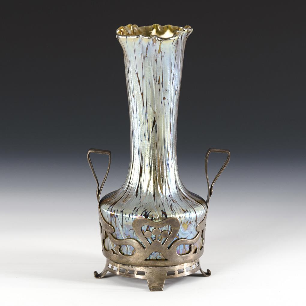 Jugendstil-Vase "Phaenomen Genres 7766" mit Metallmontierung. Lötz.