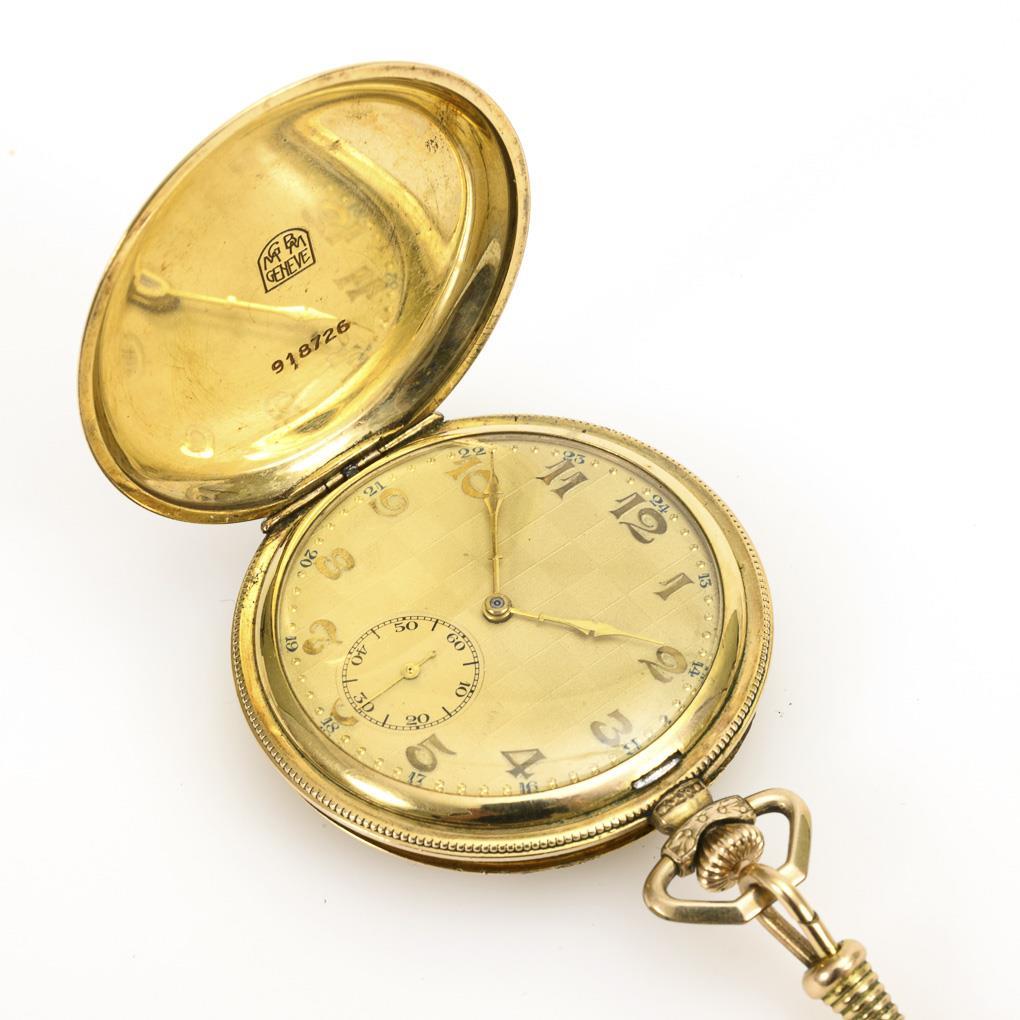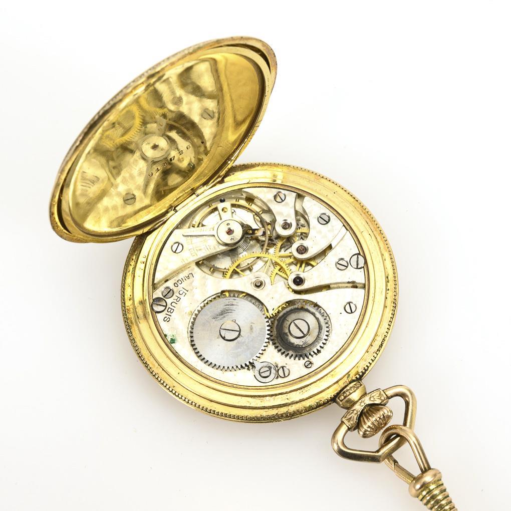 Vergoldete Art-déco-Sprungdeckeluhr mit Châtelaine.