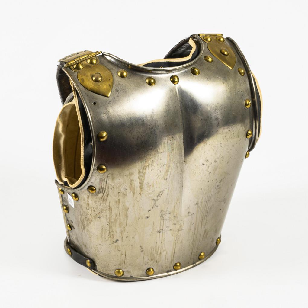 Brustpanzer mit Brustschild M 1895, (gestiftet zum 150. Jahrestag von Hohenfriedberg) fest auf Kürass montiert. Schießprobe an der Stelle eines Zapfens. Innen mit Leinen ausgekleidet, im Vorderteil eine Brusttasche aus Stoff. Rechter Knauf für Riemen etwas eingedrückt, Innenfutter jünger ergänzt.