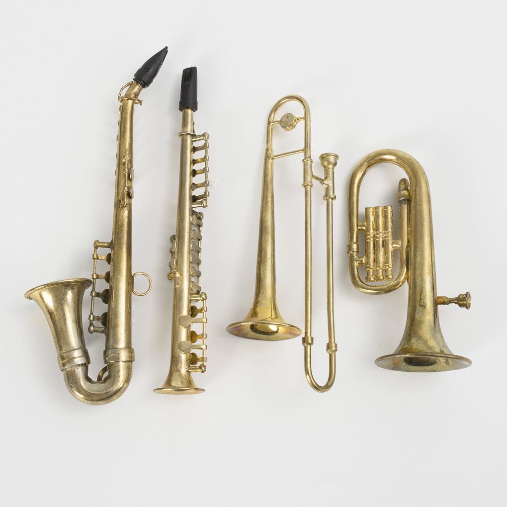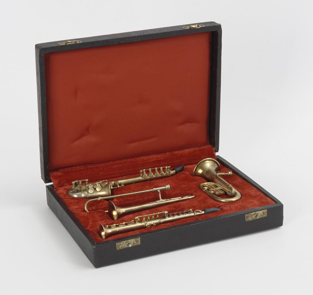 4 Miniatur-Instrumente in Schatulle.