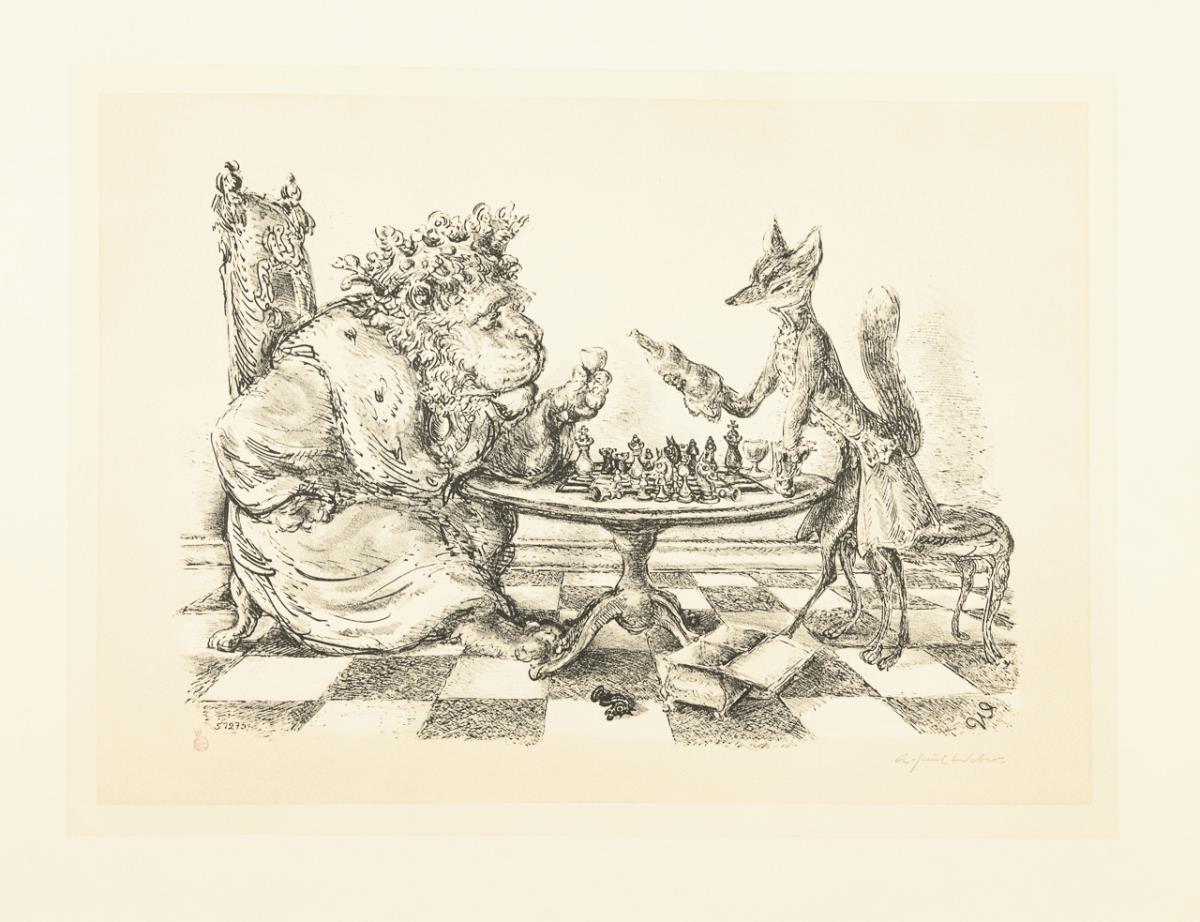 Lithografie auf Bütten. Im Druck signiert, verso violetter Stempel "Nachlass A Paul Weber" mit Bleistiftsignatur "Christian Weber". [1975].