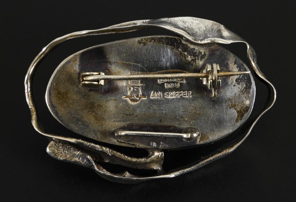 Silber 925 gestempelt. Punze: ISRAEL AVI SOFFER. Brosche 5 x3 cm. Ringgröße 57. 15,5/9,5 g.