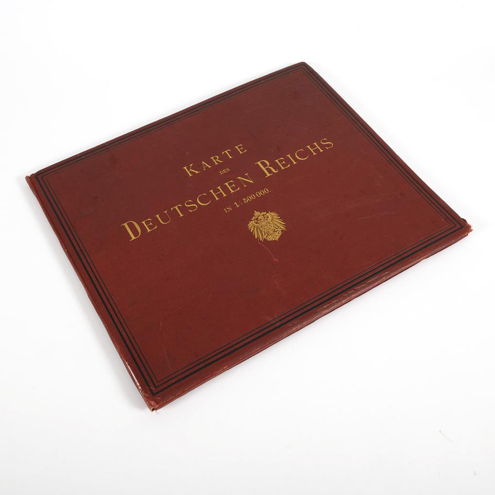 Original-Mappe mit 27 Karten (Lichtdruck) im Maßstab 1:500 000 sowie Namenverzeichnis. Vollständig. Rote Kaliko-Mappe mit Golddruck.