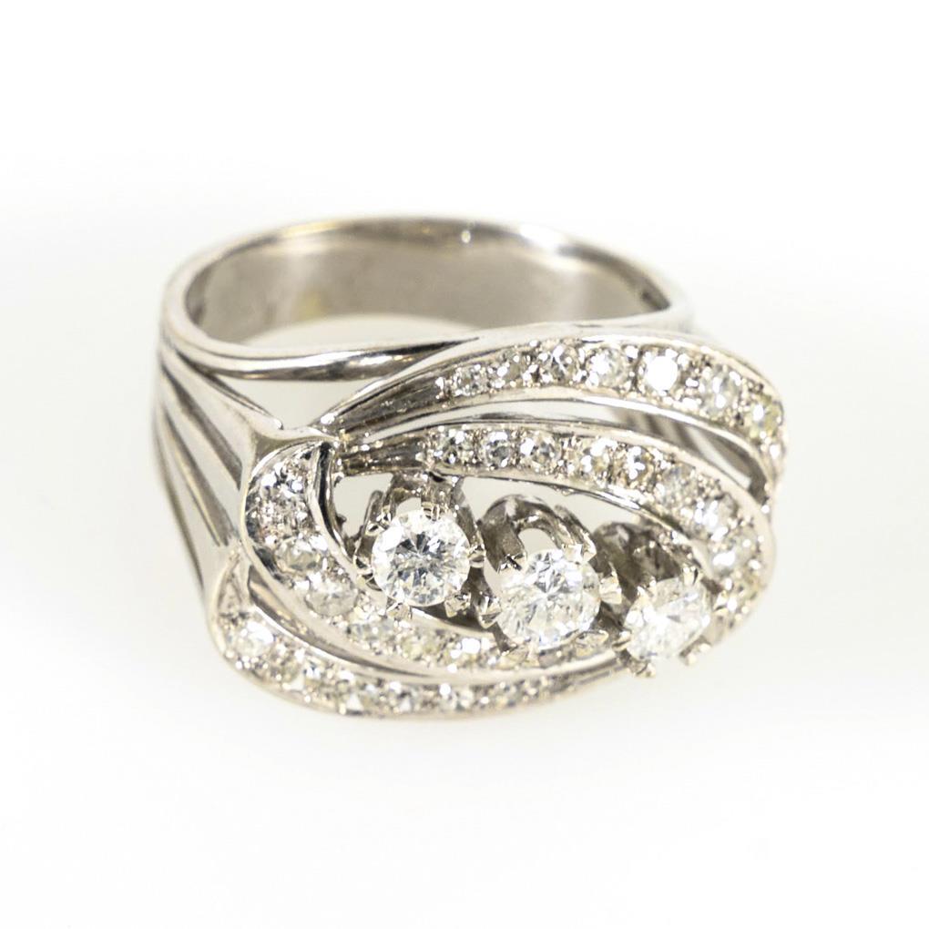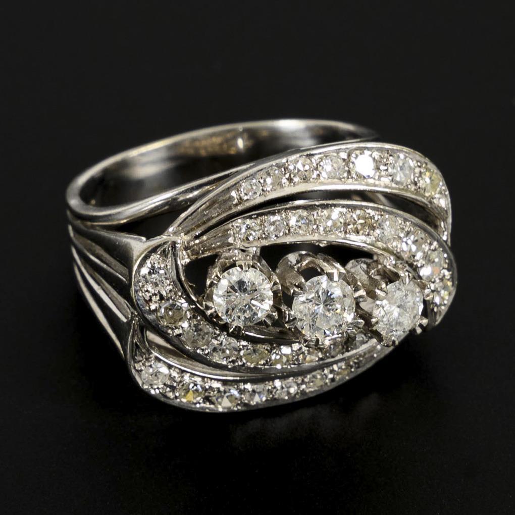 Weißgold 585 gestempelt. Brillanten zus. ca. 0,65 ct/Weiß/PI-II. Ringgröße 59. 9,8 g.
