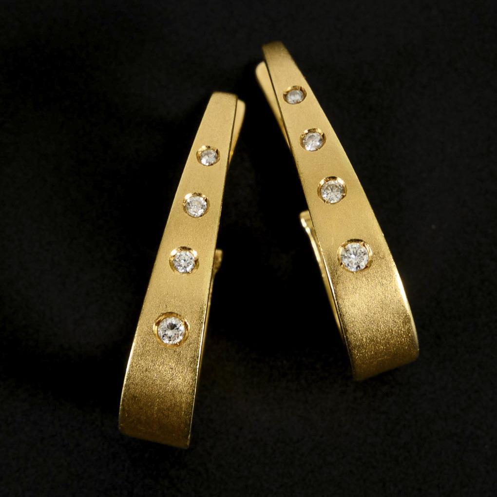 Ovale Creolen mit je 4 kleinen, eingelassenen Brillanten. Bügelsteg.