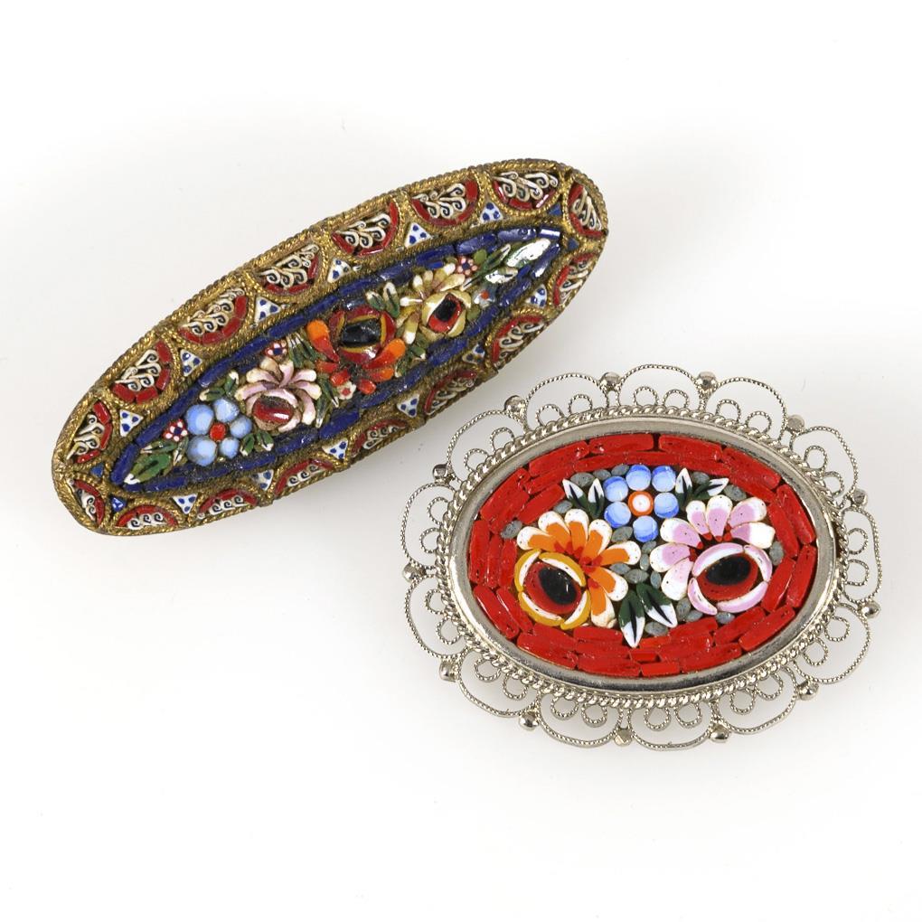 2 italienische Mosaikbroschen.