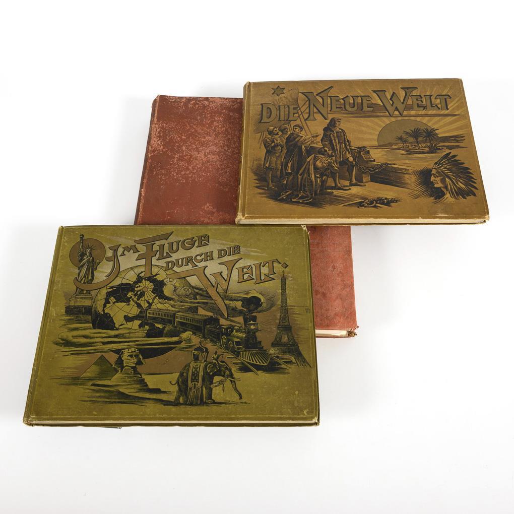 2 Bände Sammlungen von Fotografien: "Die Neue Welt", "Nord-, Central- und Süd-Amerika". / "Im Fluge durch die Welt". Werner Company, je o. J., Chicago, London, Berlin, Paris. Je bedruckte Leinwandeinbände (braun bzw. grün). / Gebundene englische Wochenzeitschrift "The Graphic", Jahrgang 1888. Roter Leineneinband. 2 lose Blätter, Einbände teils starke Alters-/Gebrauchsspuren.