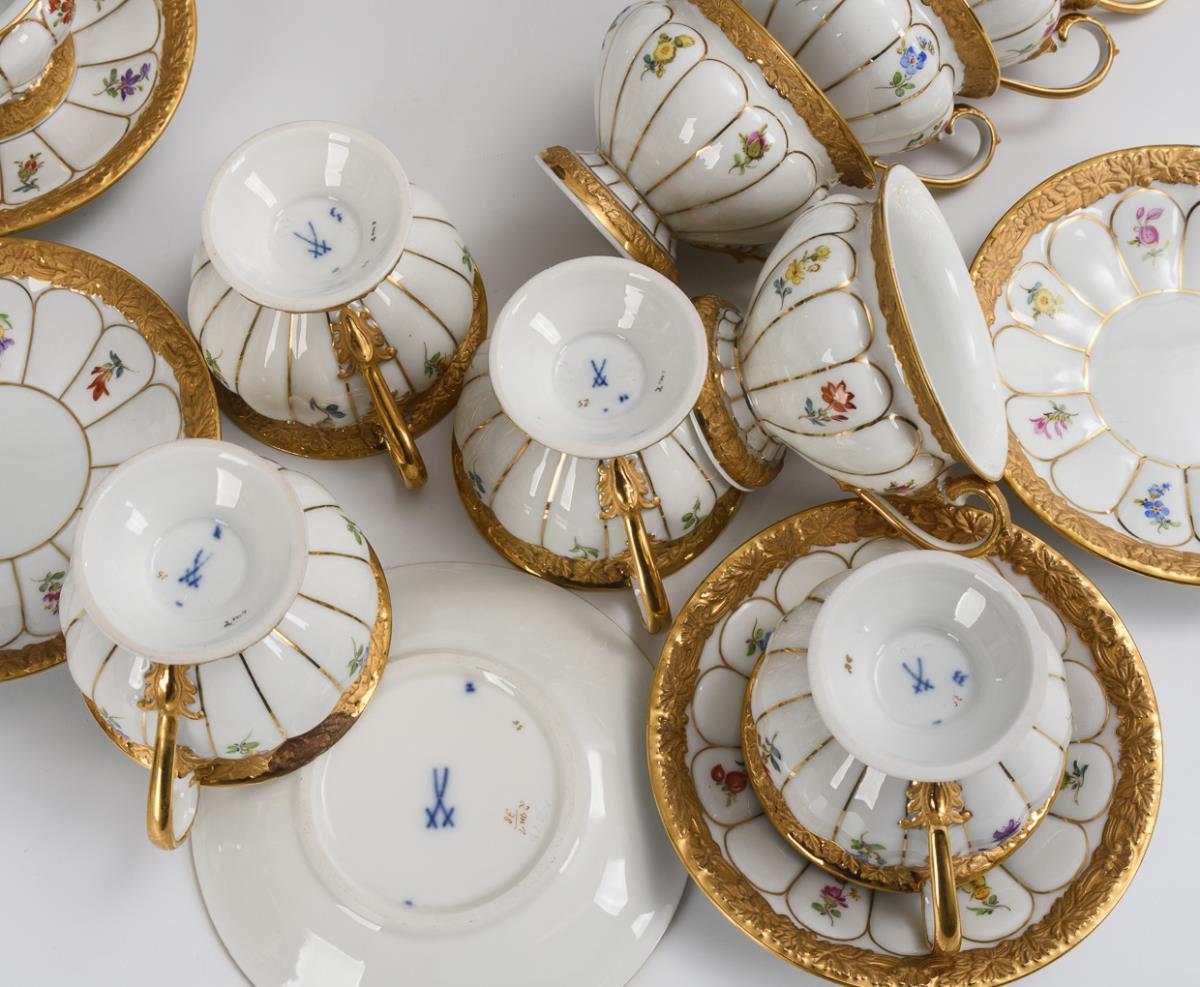 Mokkaservice "X-Form" mit Streublümchenmalerei | siehe Nachtrag. Meissen.