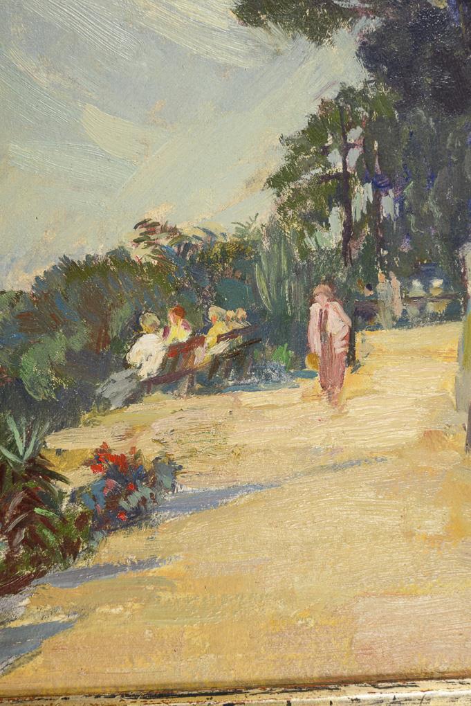 Staffagefiguren auf einem Weg Blick in die bergige Landschaft.