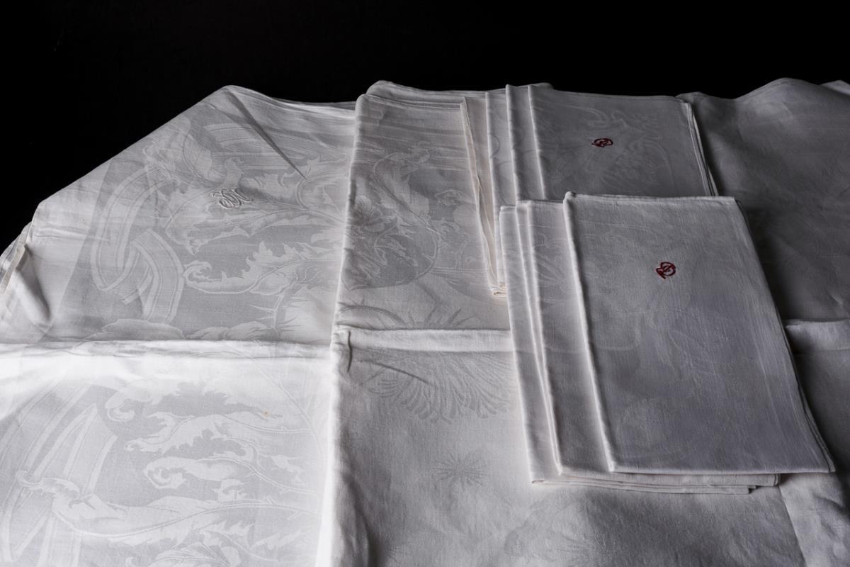 Tafeltuch und 7 Servietten um 1900.
