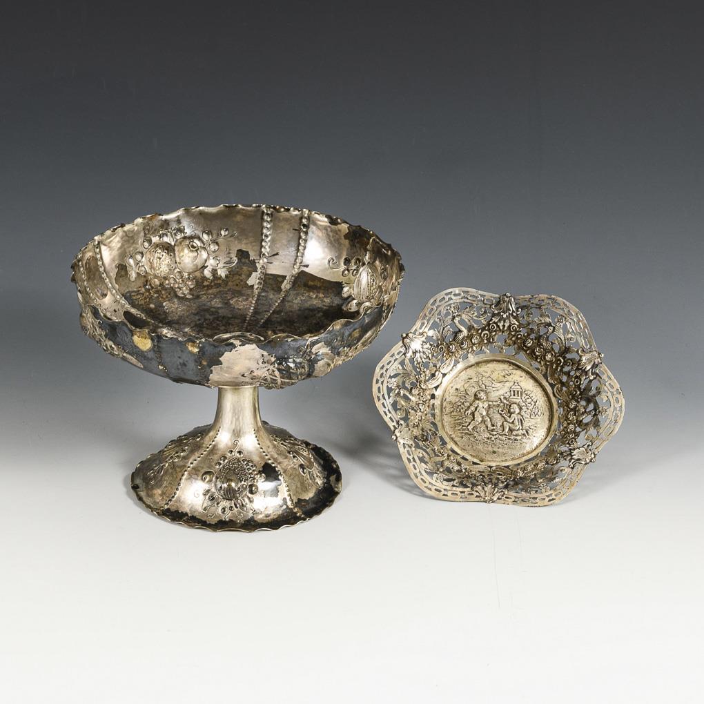 Silberner Tafelaufsatz und Durchbruchschälchen. 1x Bruckmann & Söhne, Heilbronn.