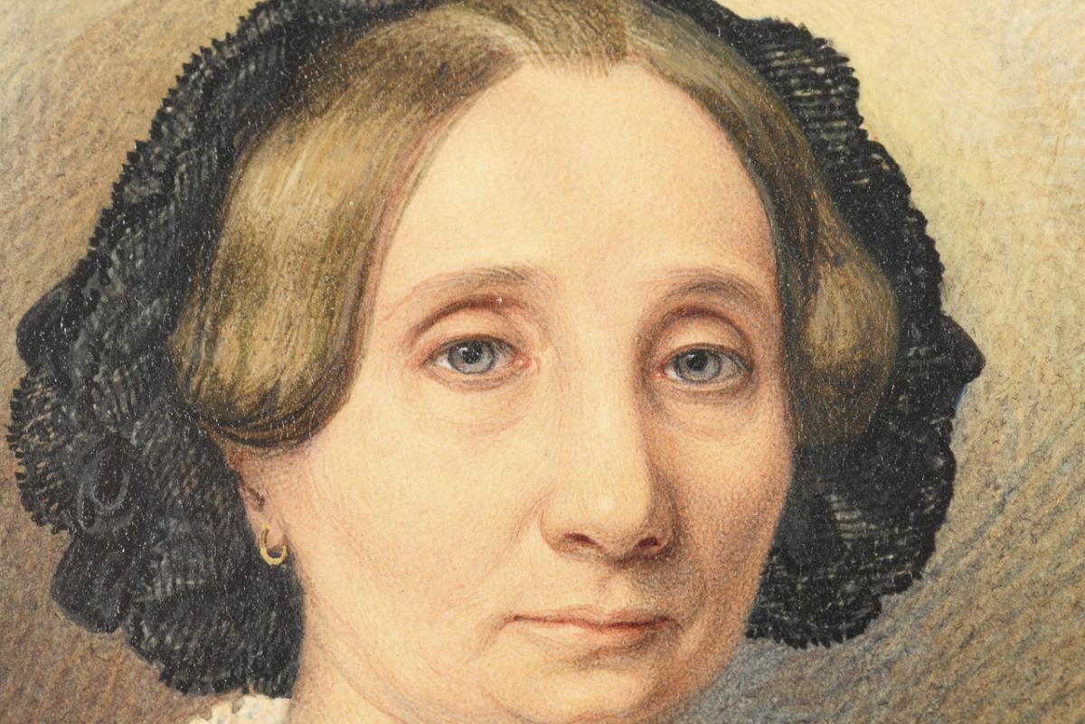 Wohl Bildnis zweier Schwestern in fein ausgeführten eleganten Kleidern und Spitzenhauben.