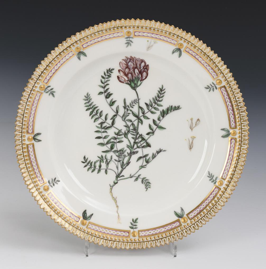 Vorspeisenteller mit gezacktem Rand. Im Spiegel die Darstellung einer Pflanze des Dänischen Tragants, unterseitig lateinisch bezeichnet. 1 Zacke minimal bestoßen.
