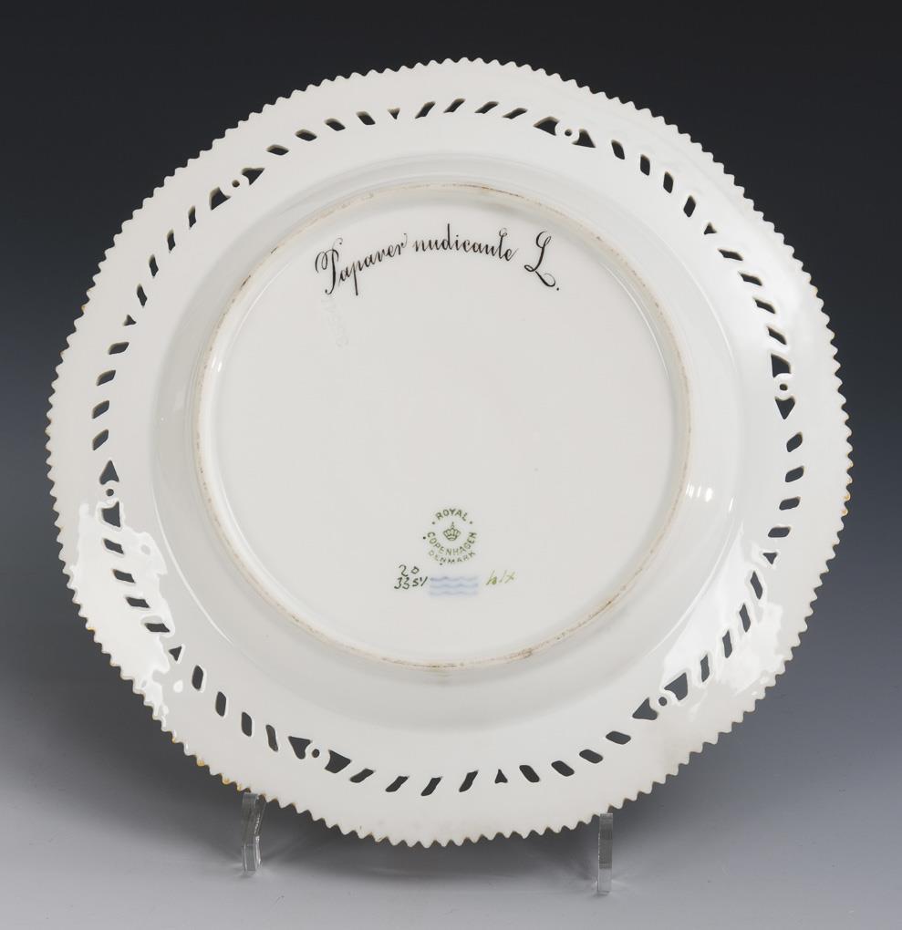Teller mit gezacktem und stabdurchbrochenem Rand. Im Spiegel die Darstellung des Island-Mohns, unterseitig lateinisch bezeichnet.