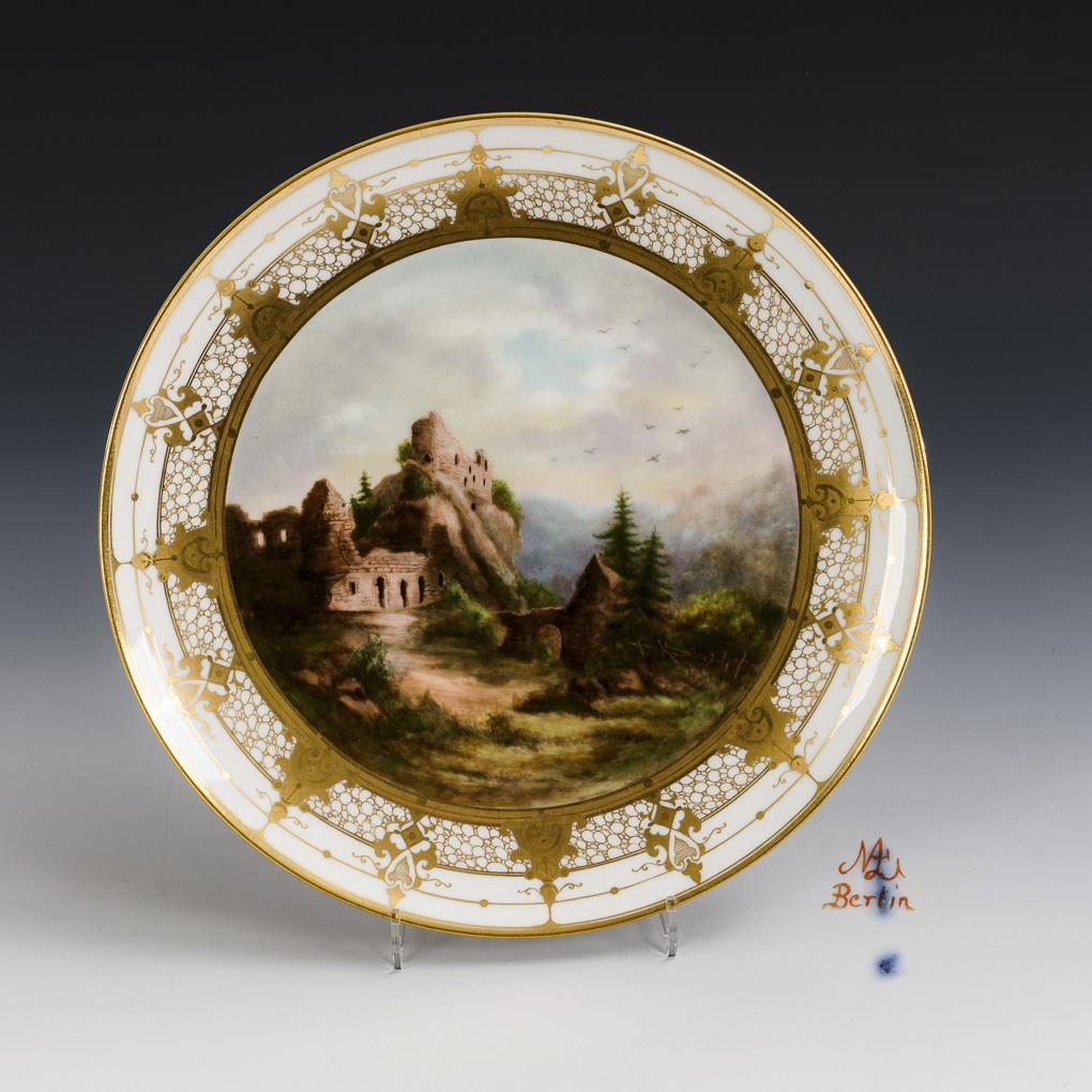 Wandteller mit Ruinenansicht. KPM Berlin.