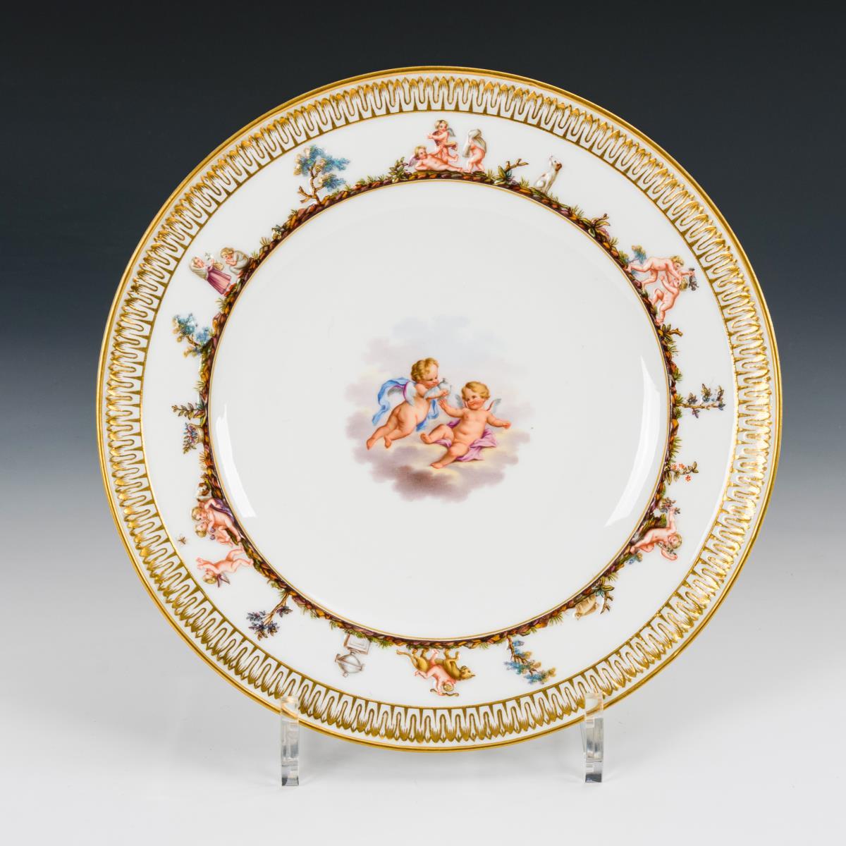 Polychrom bemalt, goldstaffiert. Ø 23,5 cm.