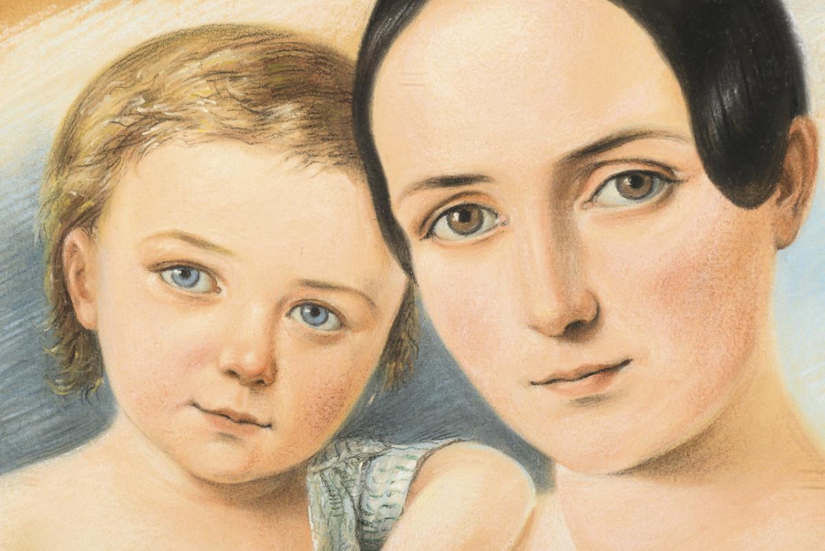 Porträt der jungen Frau mit dem kleinen Kind auf dem Arm.
