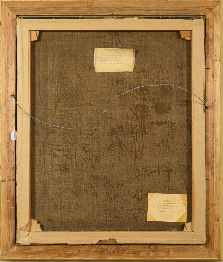 Öl/Leinwand. Unsigniert, verso als "Wilh. v. Schadow" bezeichnet sowie als "No. 34, Johanne Friederike, Tochter von J.G. Reckmann, Vice-Kammerats-Director" bezeichnet. Verso datiert: 1822.