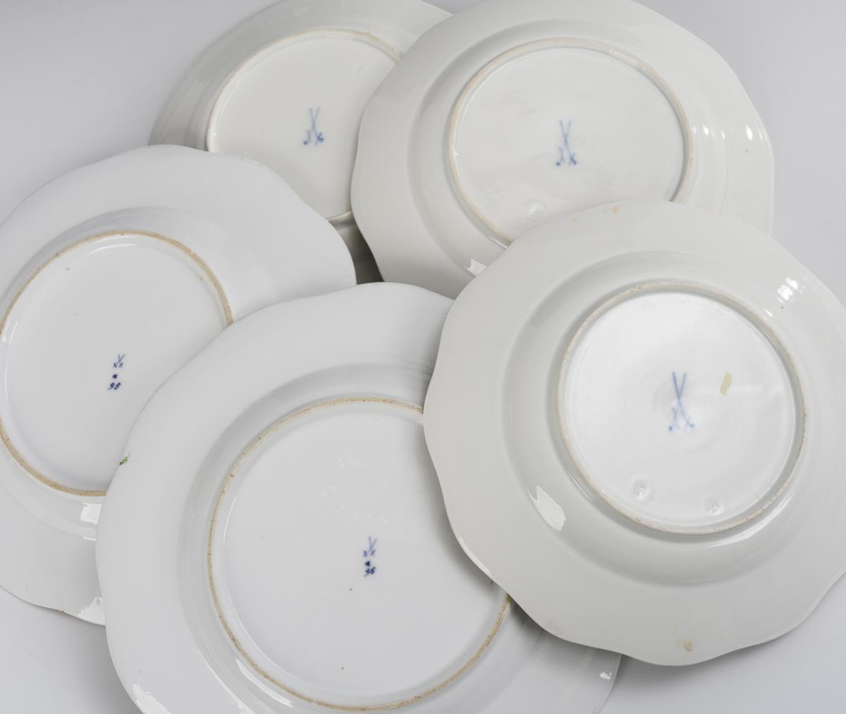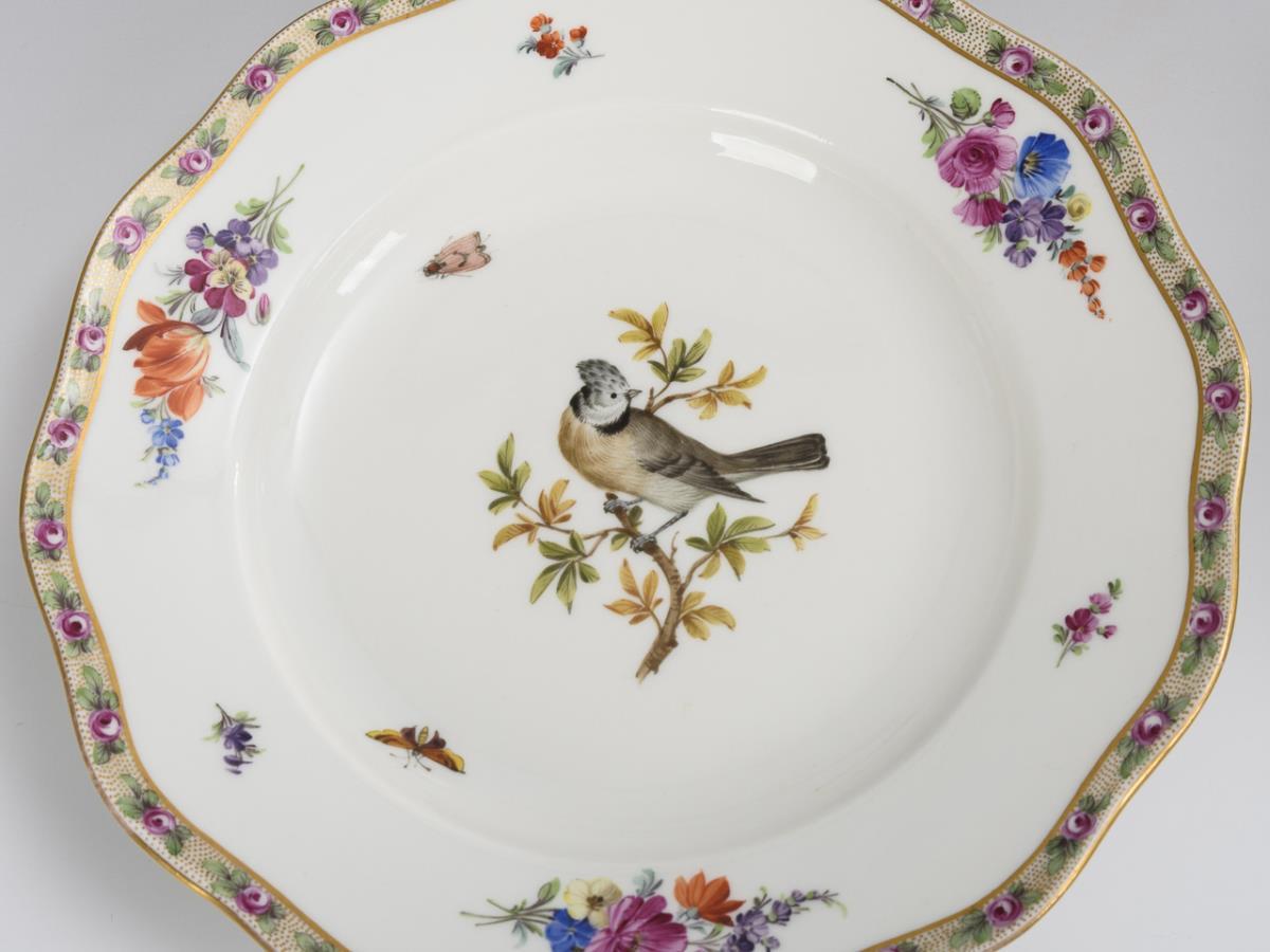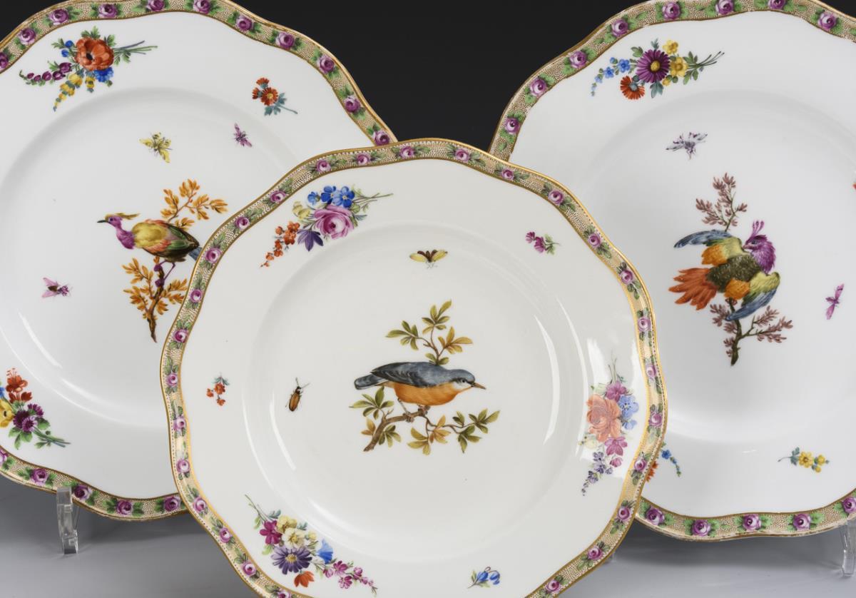 2+3 Teller mit Blumen- und Vogelmalerei. Meissen.