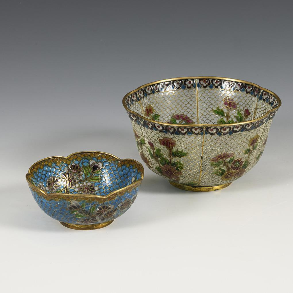 2 transluzide Cloisonnéschalen.