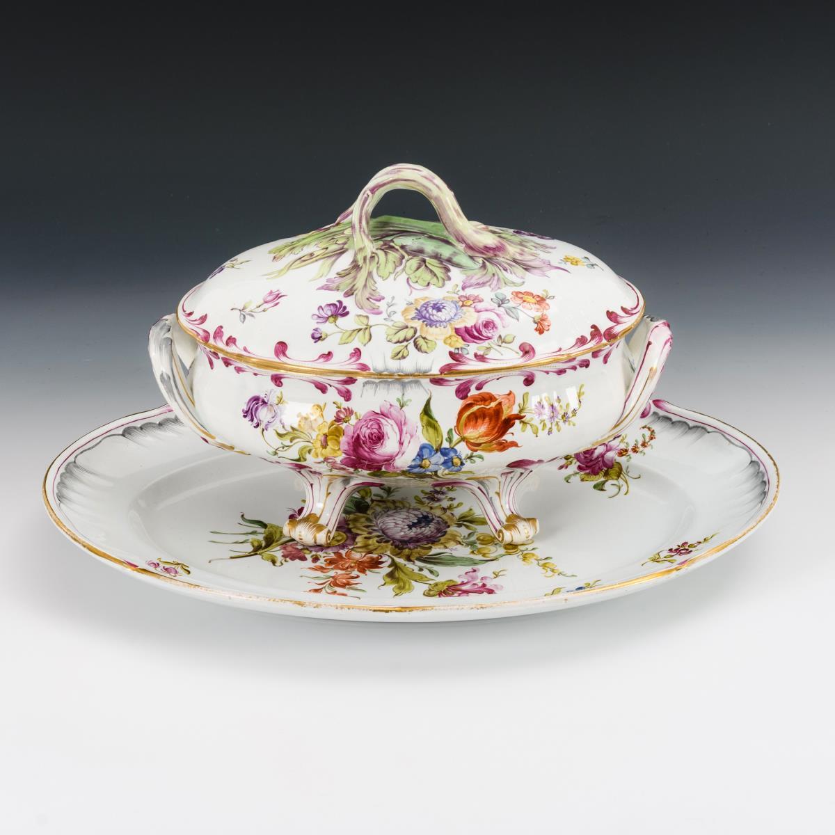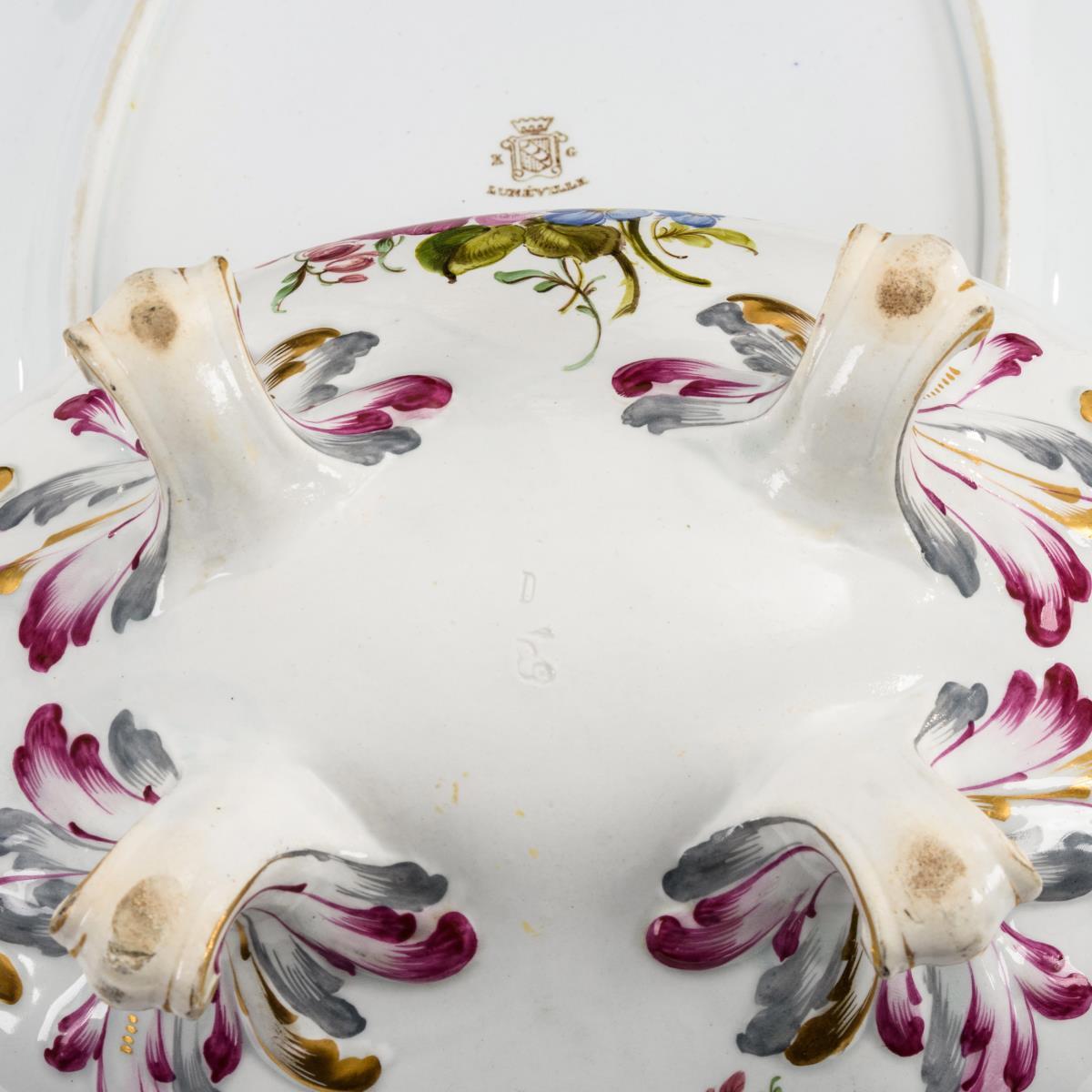Fayence-Terrine mit Presentoir. Keller & Guérin, Lunéville.