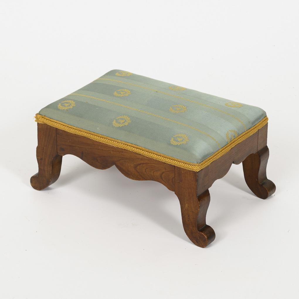 Nussbaum furniert. Récamiere: ca. 94 x 194 x 62 cm | Schemel: 16 x 33 x 23 cm.