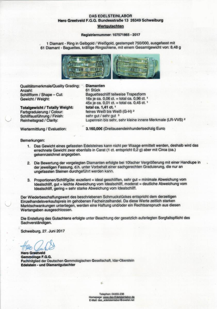 61 Diamanten in Baguette- und Trapezschliff, zwischen breiter Schiene.