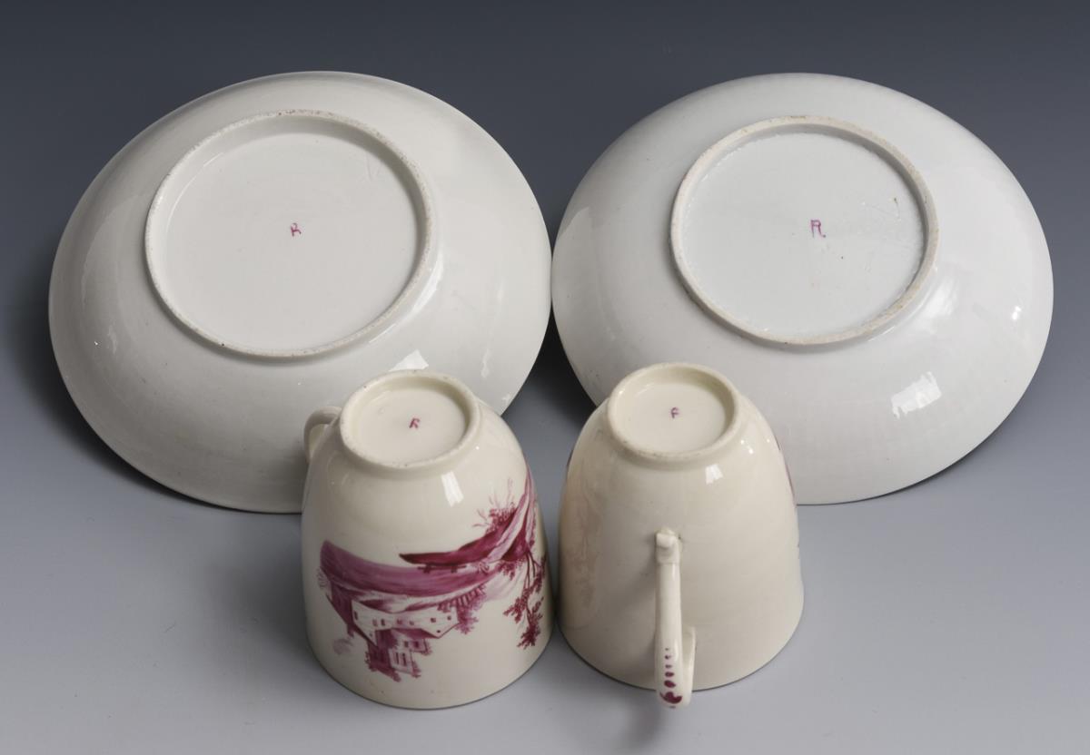 Purpurfarbene Malerei. 2 Tassen (H 7 cm), 2 Untertassen (Ø 13,5 cm).