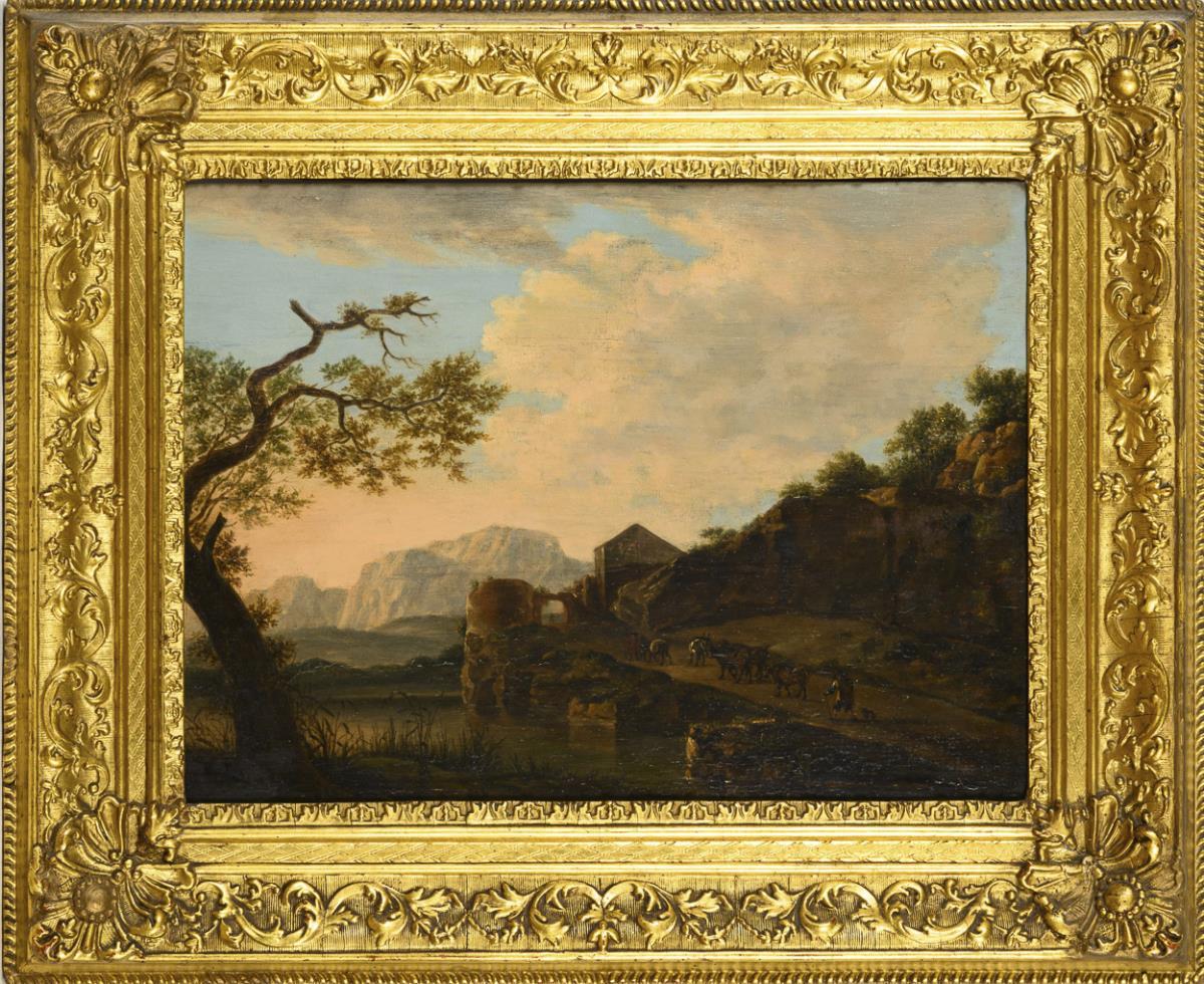 Spätbarocker Maler: Viehtrieb auf der Landstraße