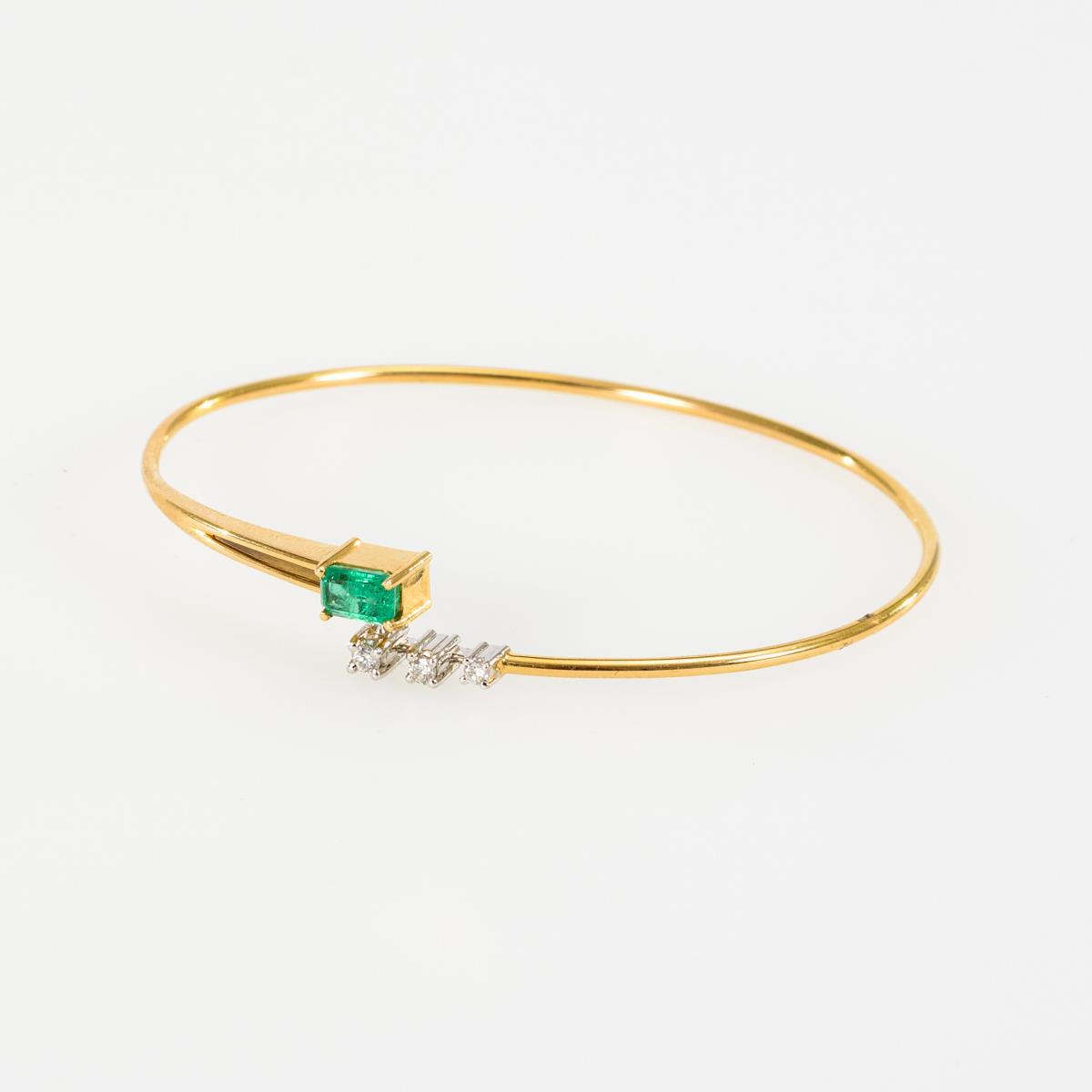 Moderner Armreif mit Smaragd und Brillanten.