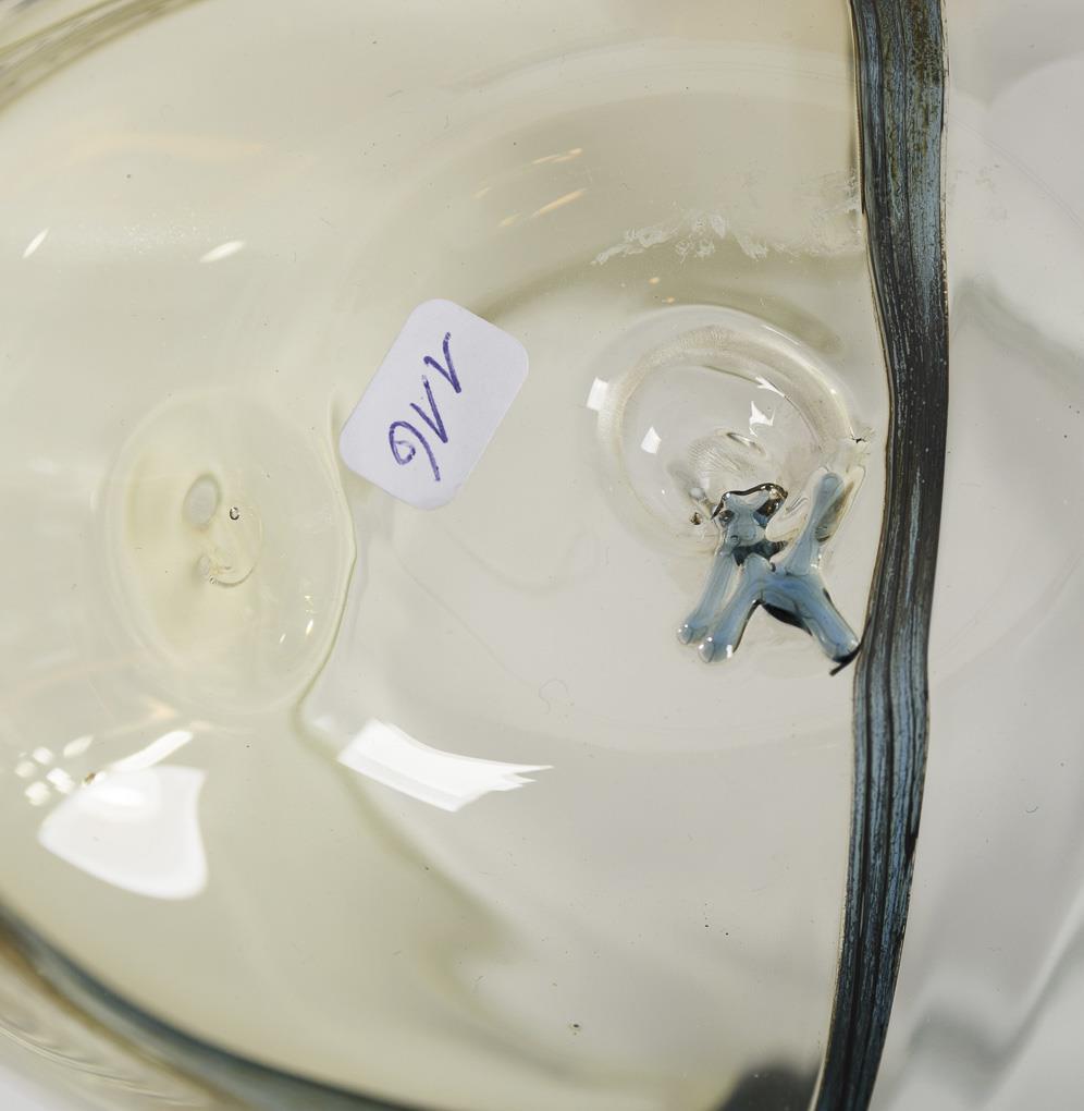 Montiertes und vor der Lampe geblasenes farbloses und blaues bzw. braunes Glas, Glasemailaufschmelzung. H 12, 12,5 und 17 cm.