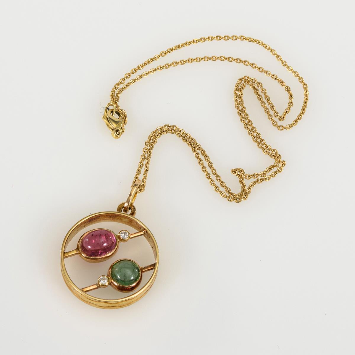 Anhänger mit Turmalinen an Kette.