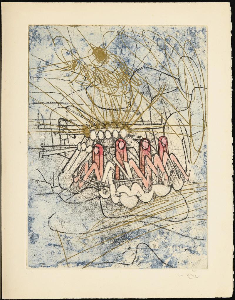 Farbaquatinta-Radierung. Bleistiftsignatur. 1966. George Visat, Paris; 1 von 170 Exemplaren (davon 85 auf Arches-Bütten und 85 auf Japanpapier); dieses Blatt außerhalb der Auflage von Frau Ursula Lehmann-Brockhaus, Mitautorin des Werkverzeichnisses des Künstlers.