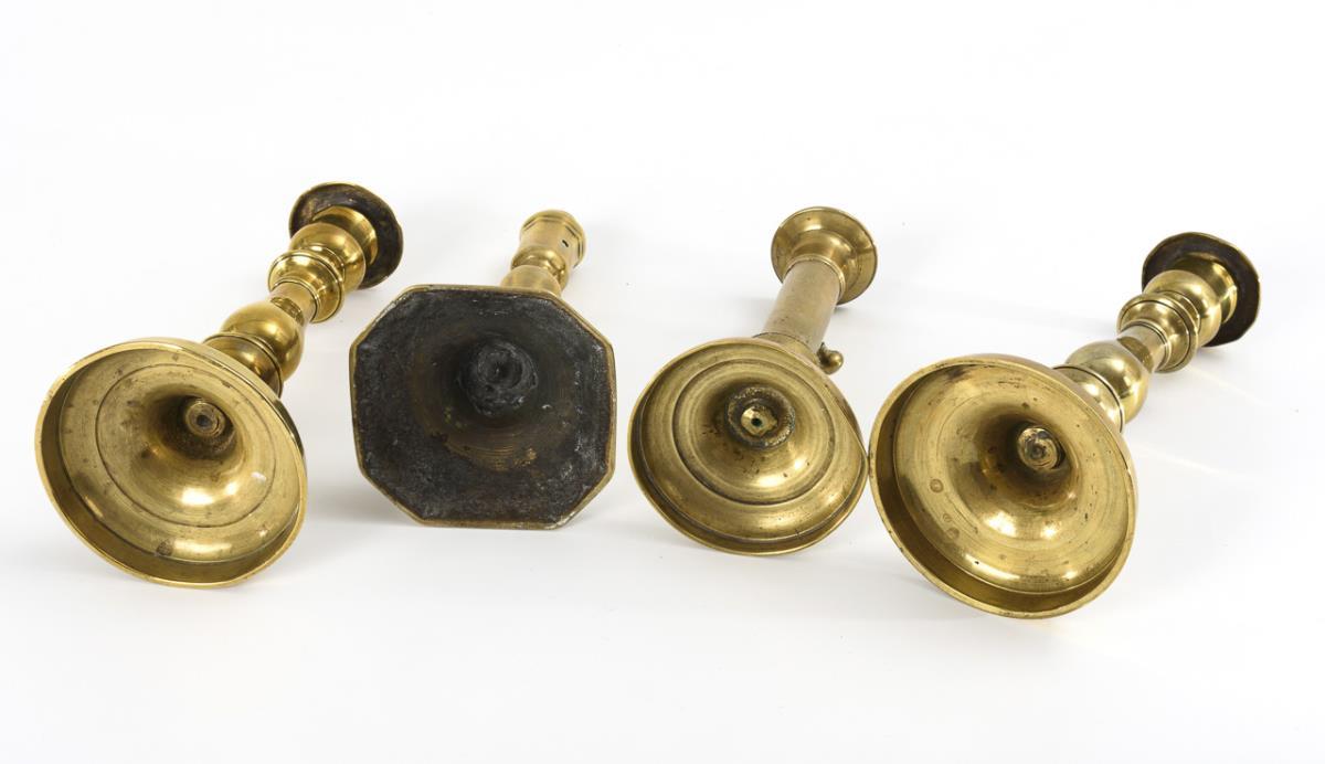 1 Paar Spätbiedermeier-Balusterleuchter, 1 Schiebeleuchter und 1 barocker Bronzeleuchter. Schreibzeug-Sockel mit 3 Aussparungen für Tintenfass mit glasiertem Keramikeinsatz, Streubüchse und hier mit Handglocke. Teils Alters-/Gebrauchsspuren, Glocke ergänzt.