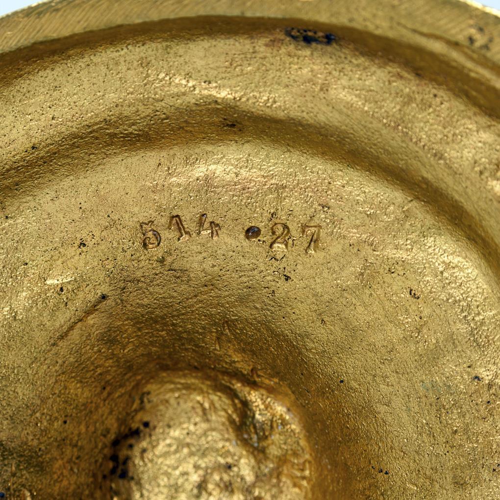 Auf reliefiertem Rundfuß gleichsam wachsende Blattarme mit vegetabilen Tüllen, wobei die zentrale erhöht ist.