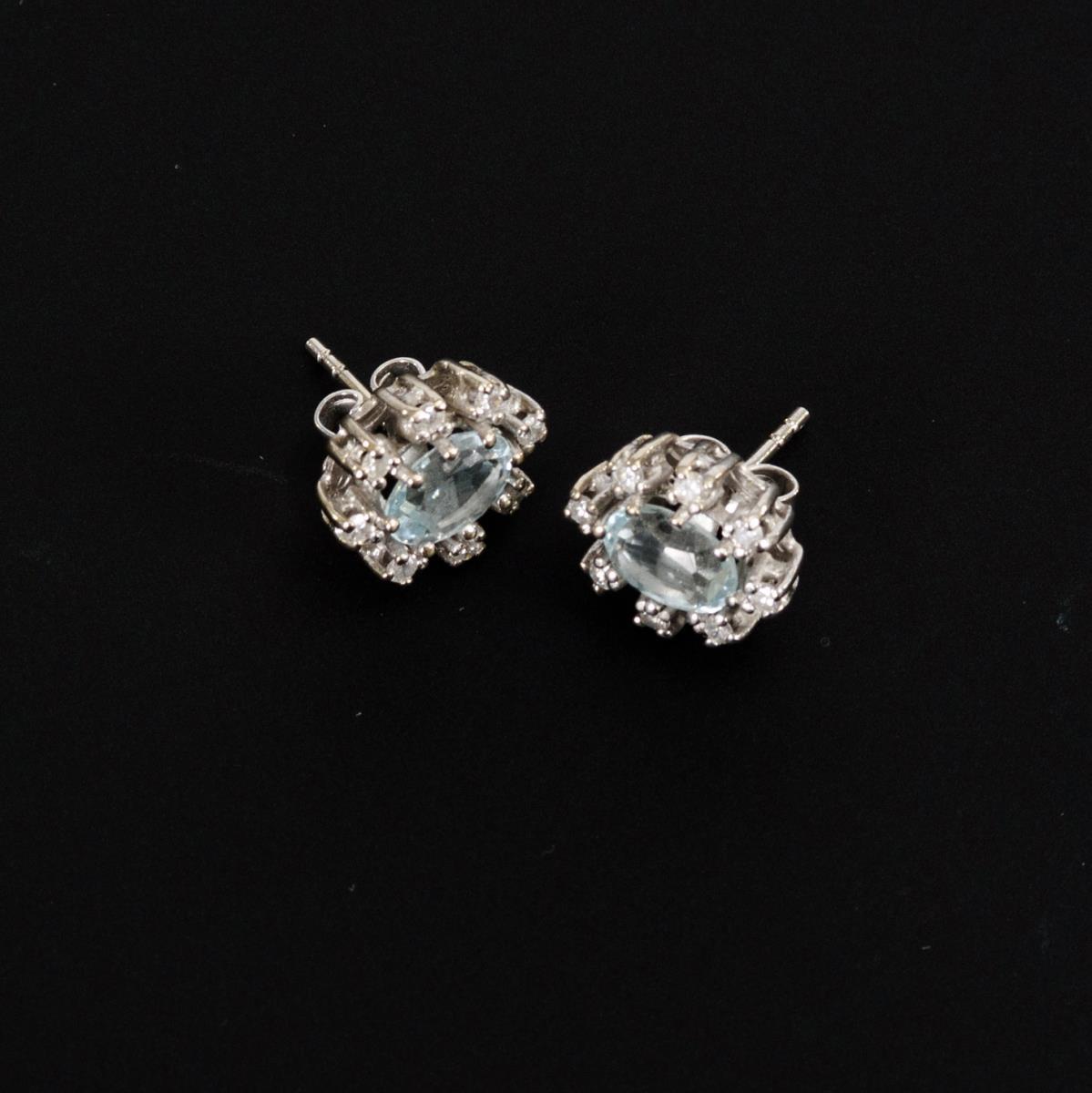 Ohrsteckerpaar mit Aquamarinen und Brillanten.