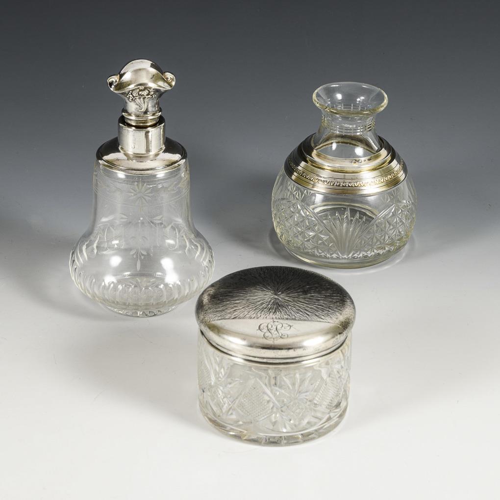 Beschliffenes Klarglas, Silber. H 8 - 17 cm.