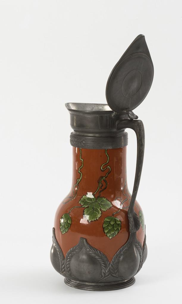 Jugendstil-Kanne mit Zinnmontierung.