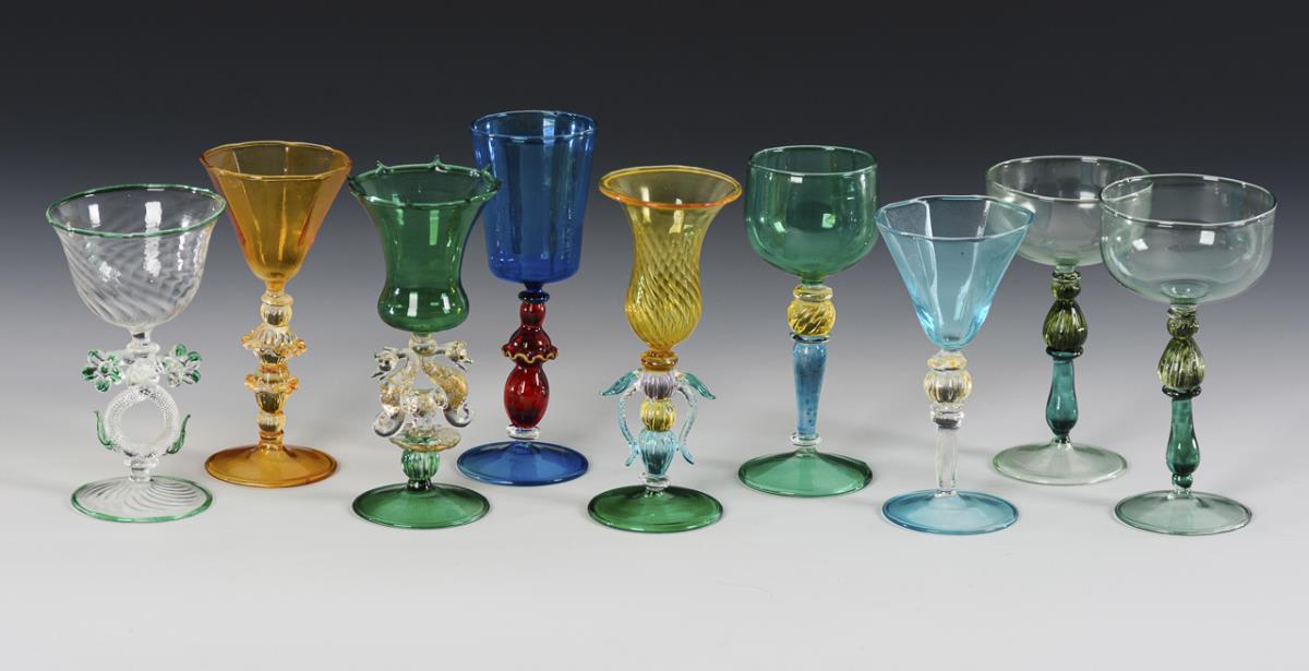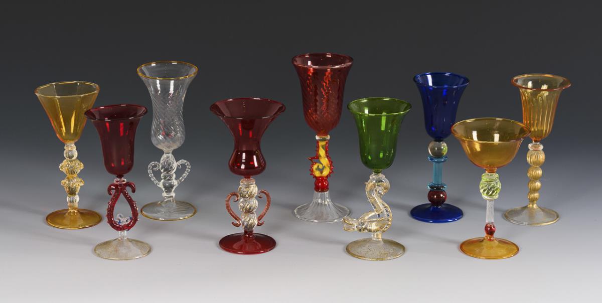 18 verschiedene Likörgläser. Murano.