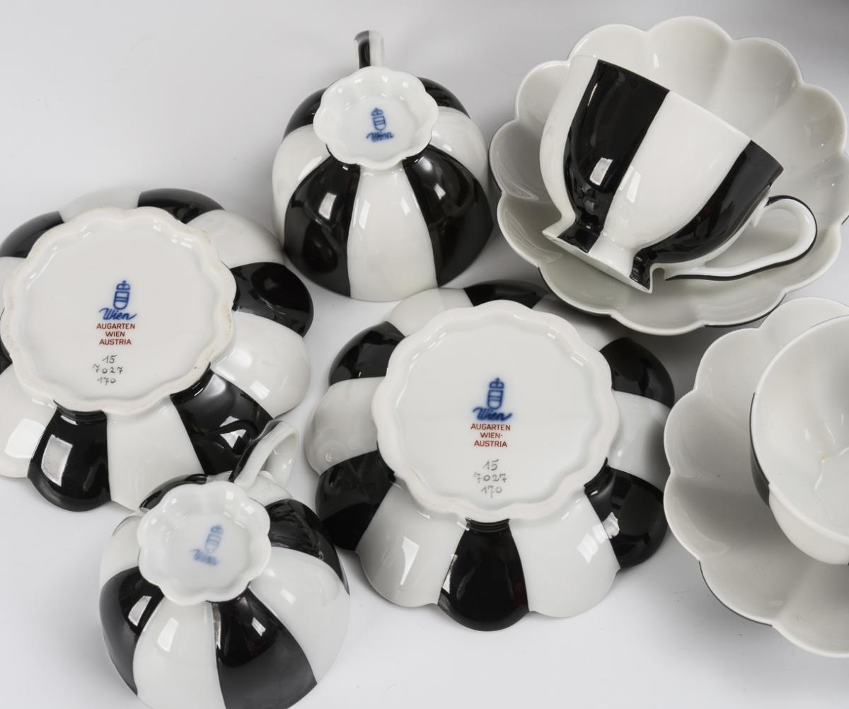 11 Teile. Mokkakanne (H 17,5 cm), Milchkännchen, Zuckerdose, 4 Tassen und 4 Untertassen.