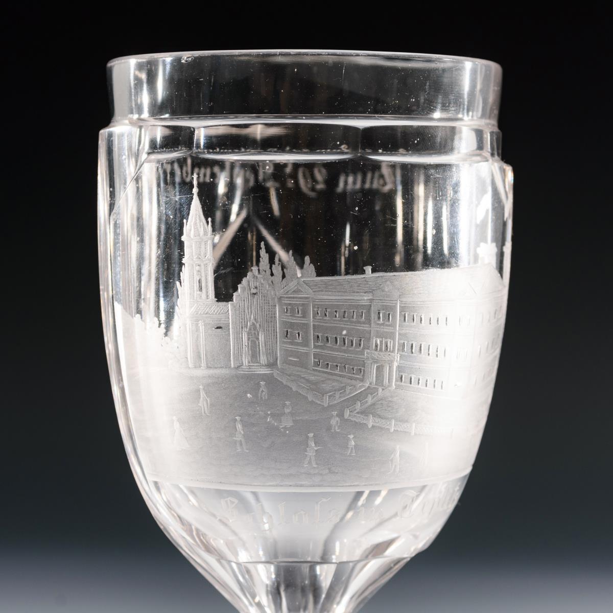 1x mit der Ansicht des Schlosses in Teplitz sowie der Widmung "Zum 29.t September 1861." / 1x mit der Ansicht der Albrechtsburg in Meissen. 1x minimale Bestoßung am Mündungsrand, 1x Chip am Fuß.