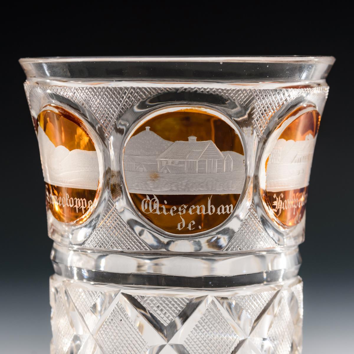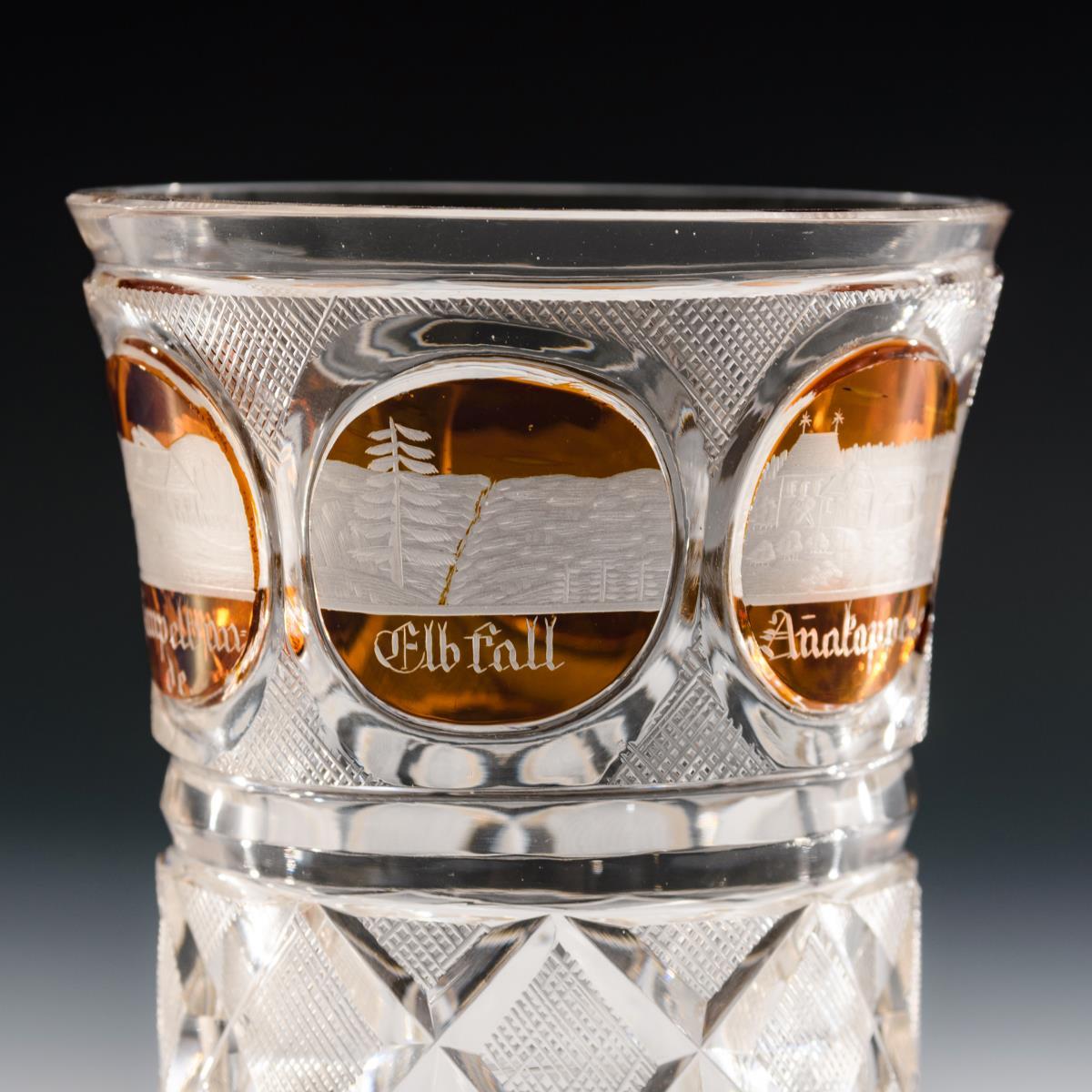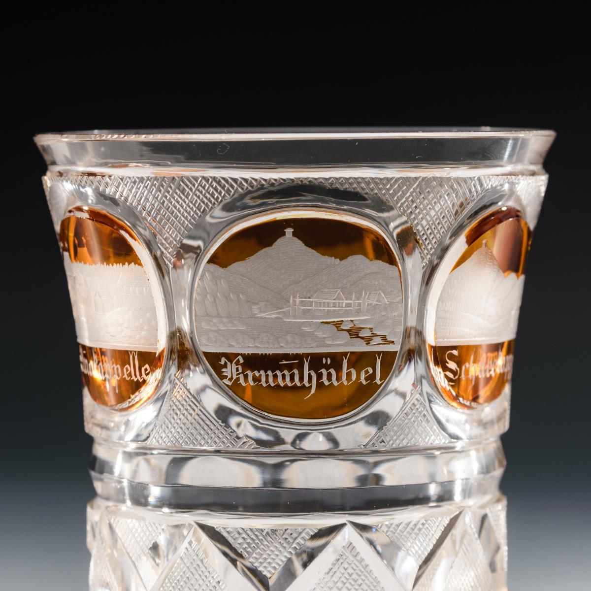 Auf der Kuppa sechs Medaillons mit Ansichten aus dem Riesengebirge. Minimale Bestoßungen am Fuß.