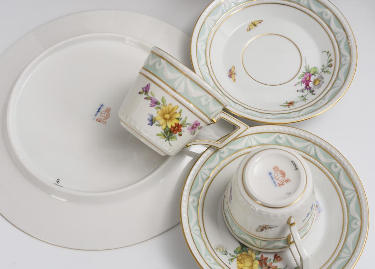11 Teile Porzellan "Kurländer Muster". KPM Berlin.