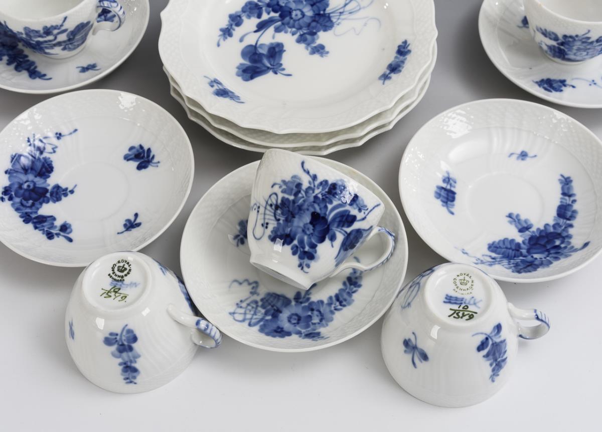6 Gedecke mit Blaumalerei. Royal Copenhagen.