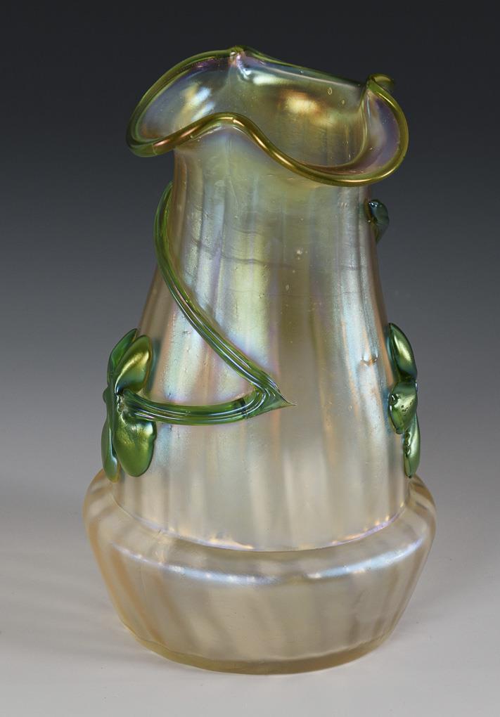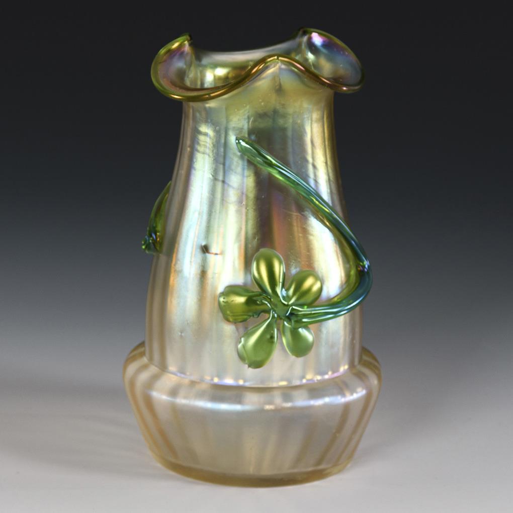 Farbloses und grünes Glas, irisiert. H 16,5 cm.