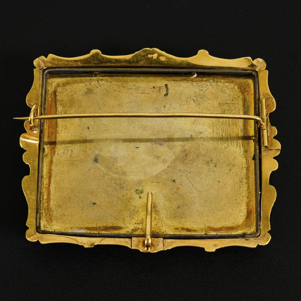 Gelbgold 585 gestempelt. Rückplatte Silber geprüft, vergoldet. 5,5 x 6 cm. 47,5 g.