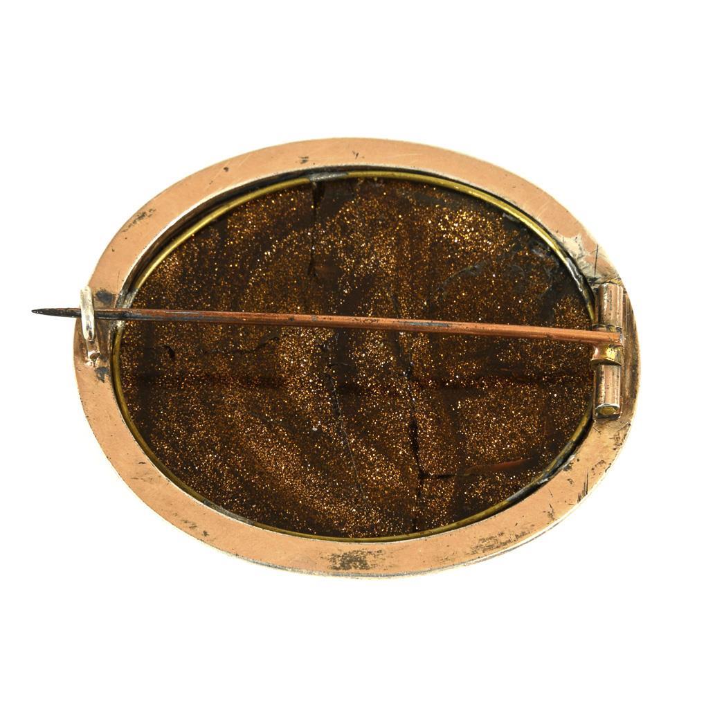 In Goldfluss eingelegtes Mosaik mit Motiv des Kapitols in Rom, in offener Zargenfassung. Hakenverschluss. Mosaik partiell mit Fehlstellen, Goldflussrand 5 mal gerissen, rückseitig mehrfach gebrochen.