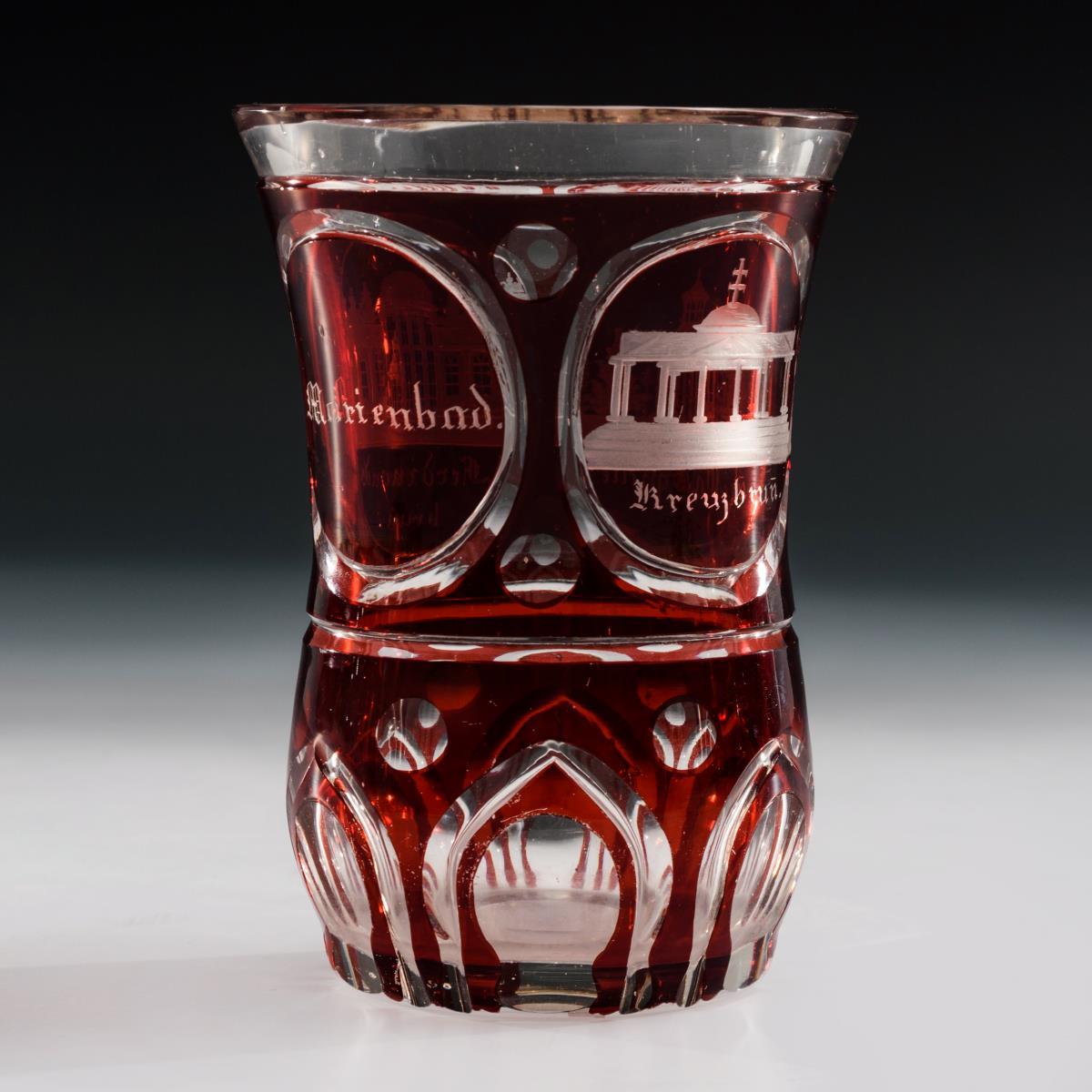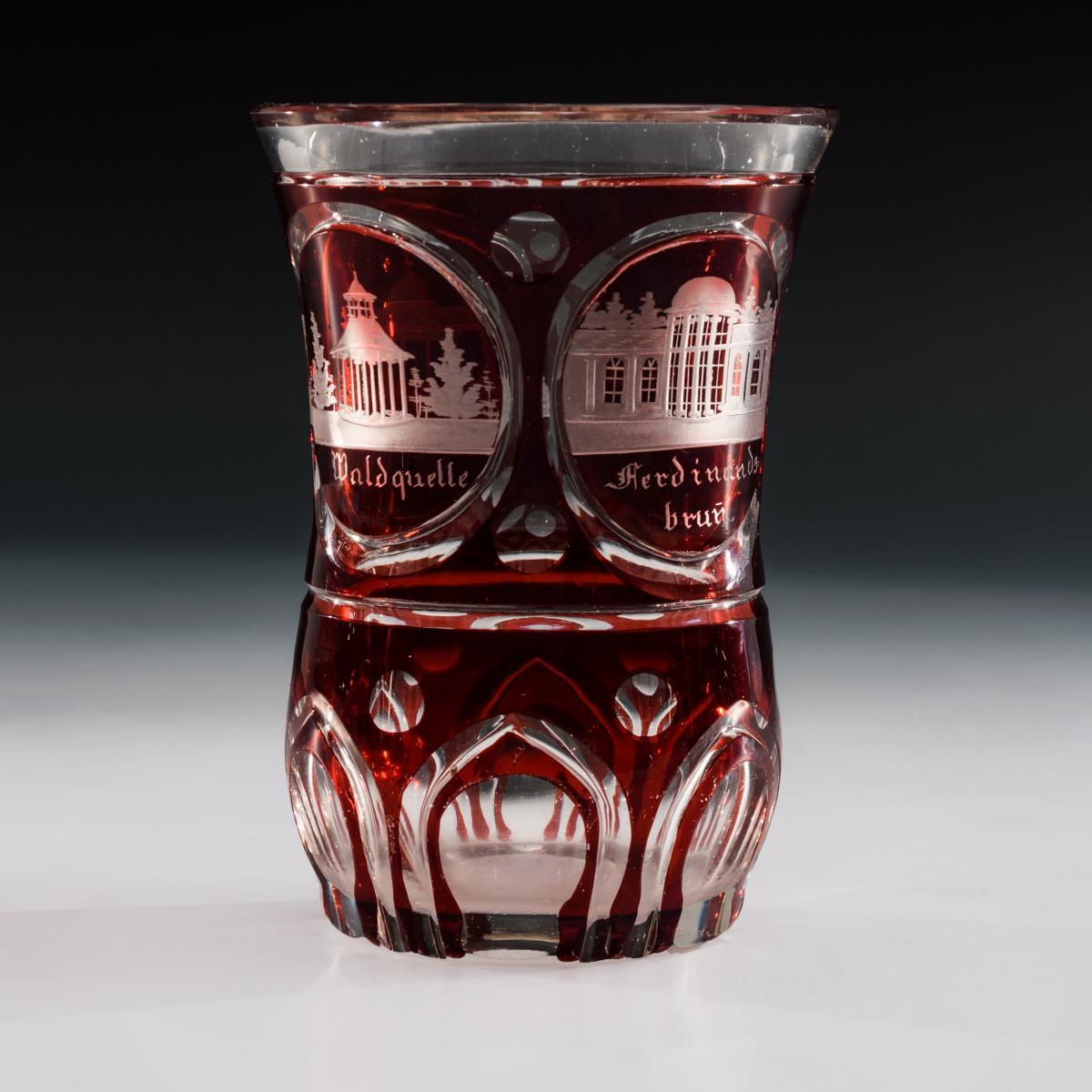 Farbloses, teils rot bzw. purpurfarben gebeiztes Glas. H 11,5 - 12 cm.