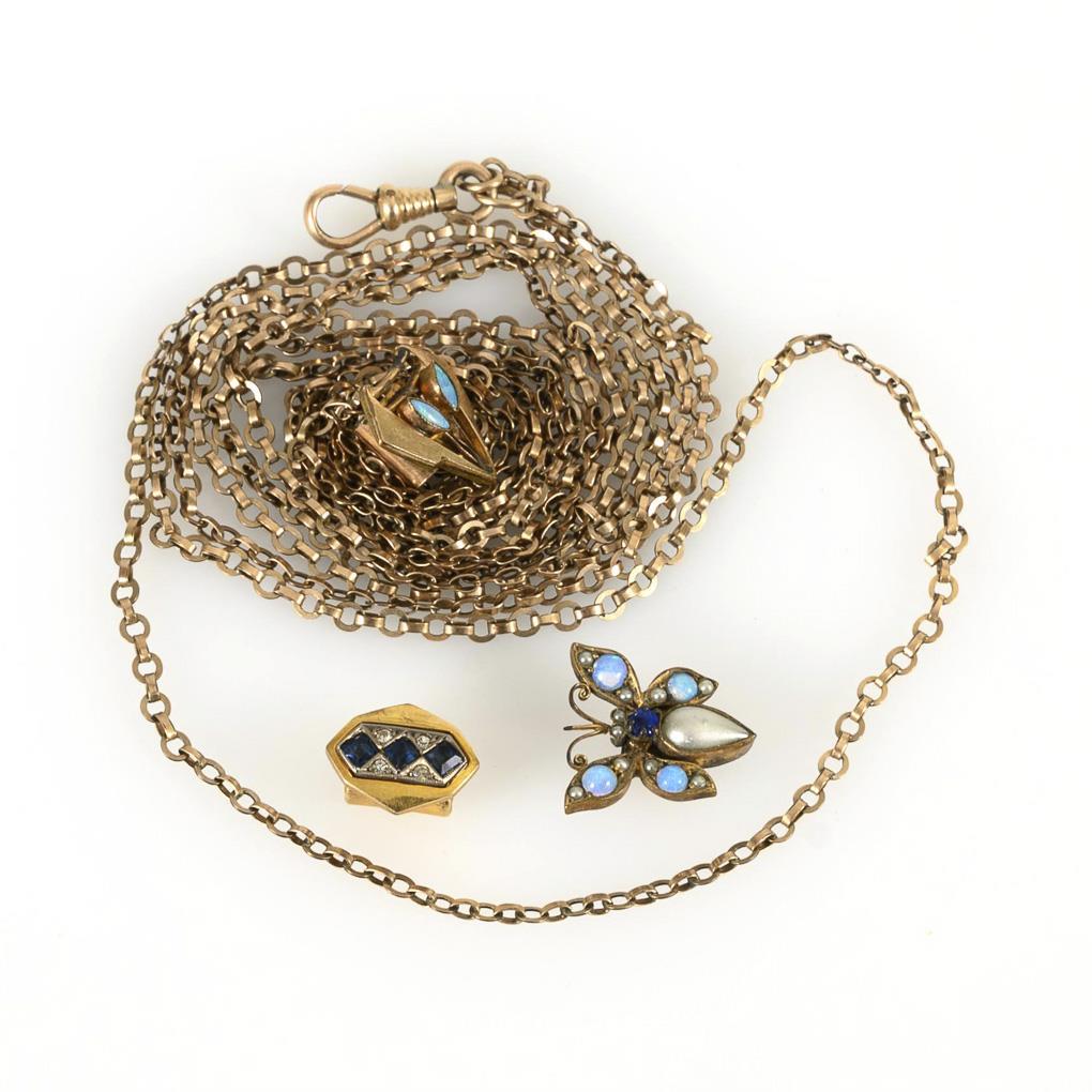 Uhrenkette mit 3 Schiebern, um 1900.