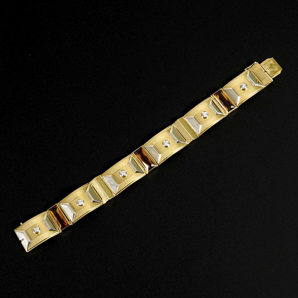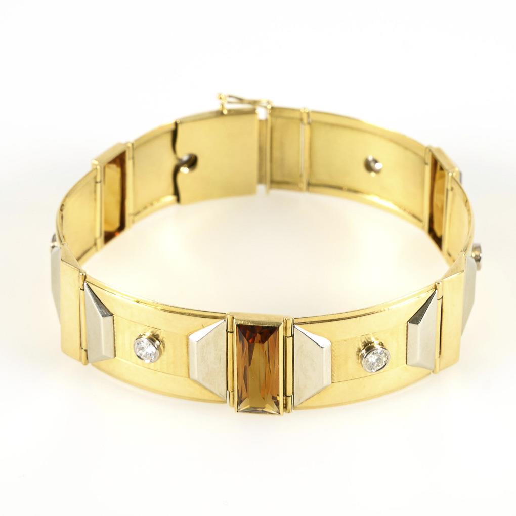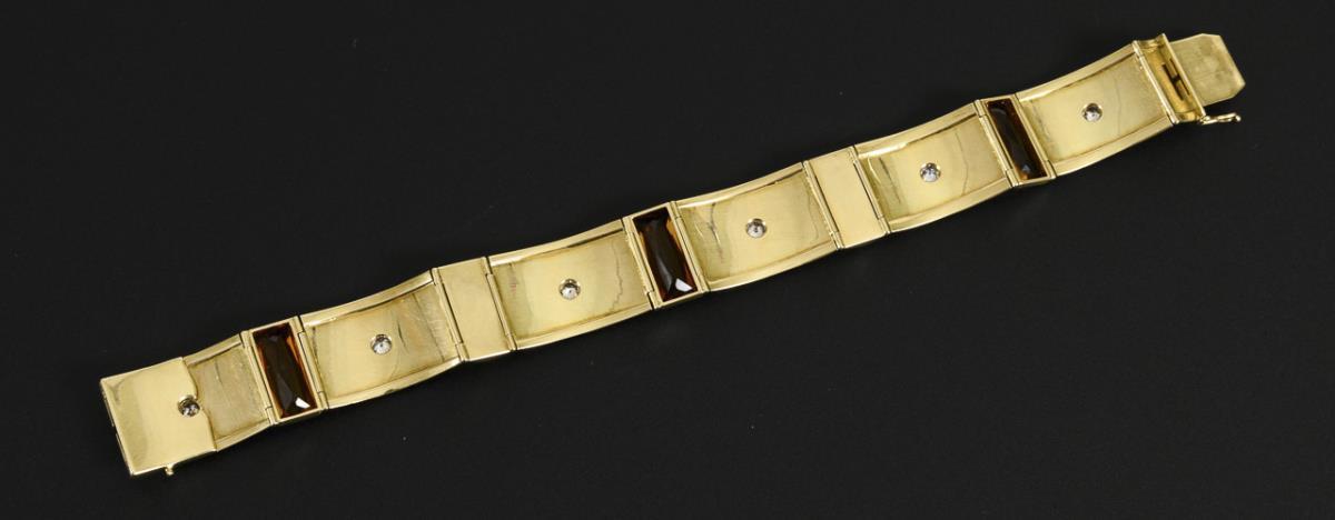 6 zargengefasste Brillanten auf reliefierten Gliedern, dazwischen 3 Citrine in Zargenfassungen. Kastenschloss mit Achtersicherung.